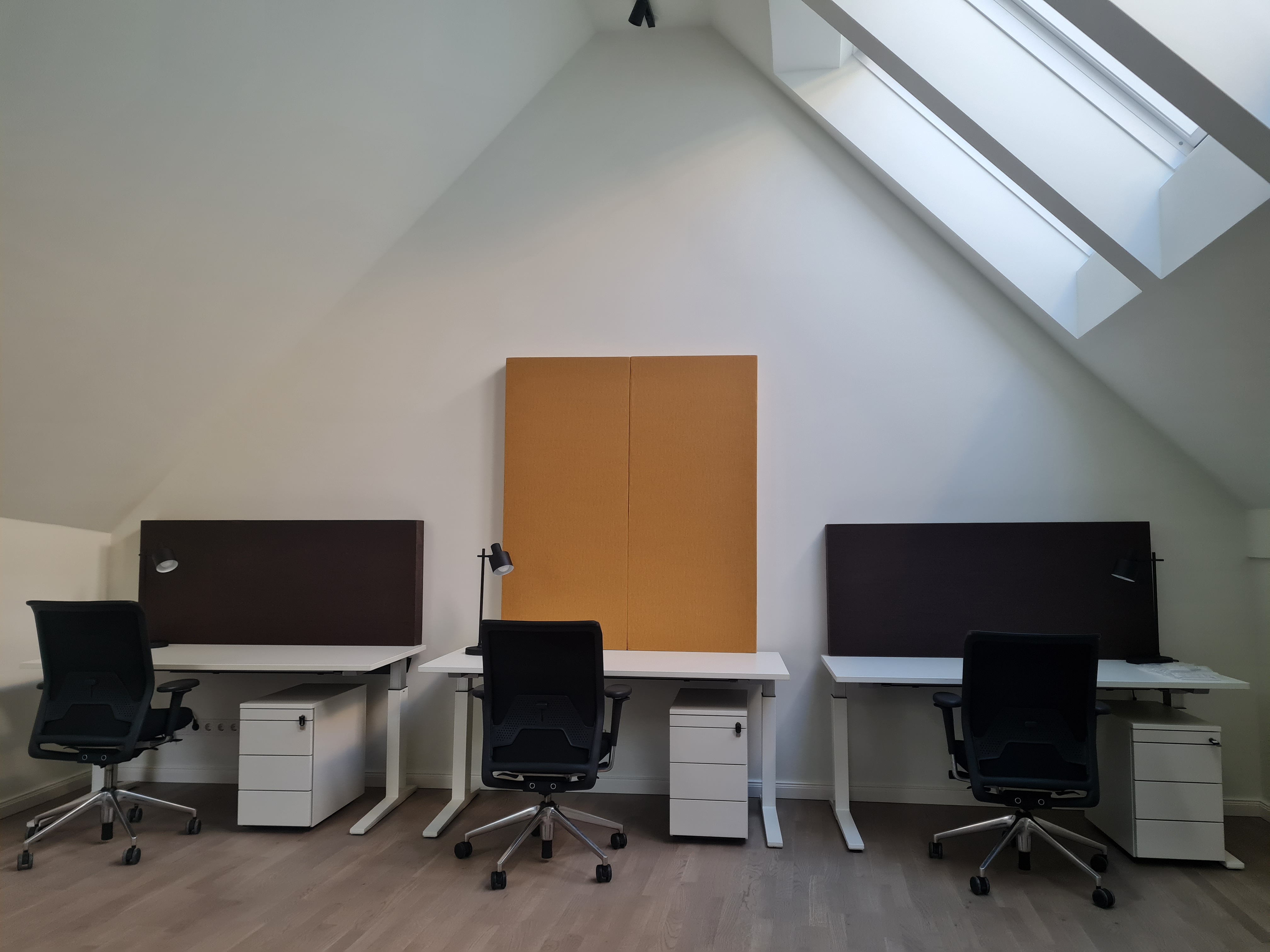 Unser zweigeschossiger Coworking-Bereich besticht durch architektonisch markantes Altbauflair und großzügige Dachflächenfenster.