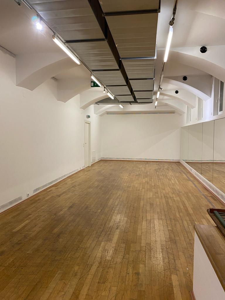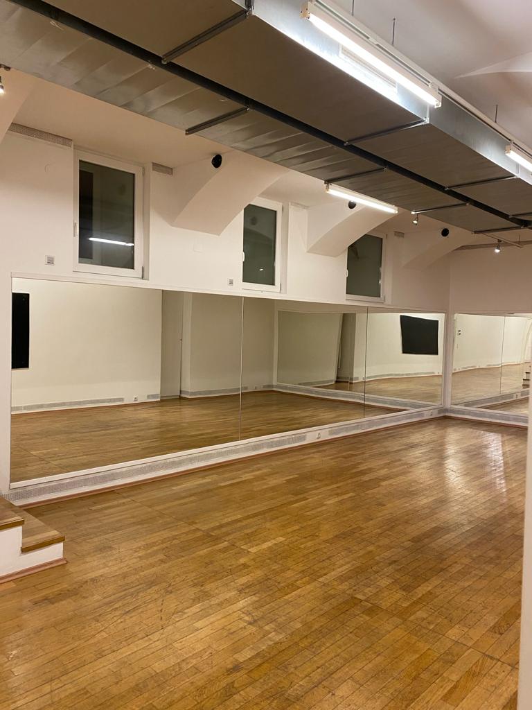 Modernes Studio mit ca. 180 m², ideal geeignet Für Yoga, Tanz-, Schauspiel-und Musikproben, Pilates, Bewegung allgemein, für Workshops, Meetings oder kreative Projekte. Der Boden ist hochwertiges Parkett, große Spiegelwände, gute Beleuchtung, angenehme Akustik. Separate Garderobe mit Duschen. Vorraum, 3 Toiletten vorhanden.