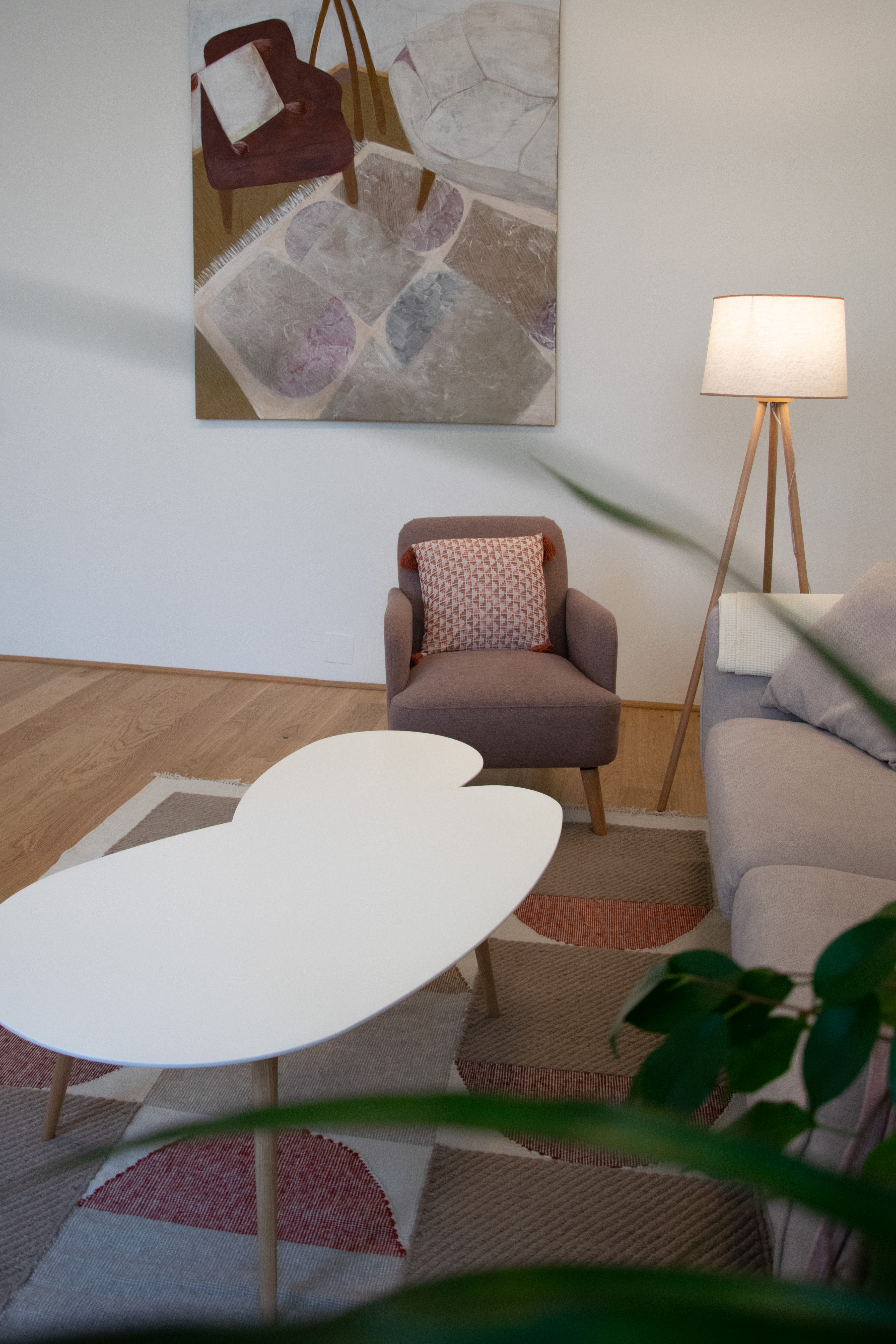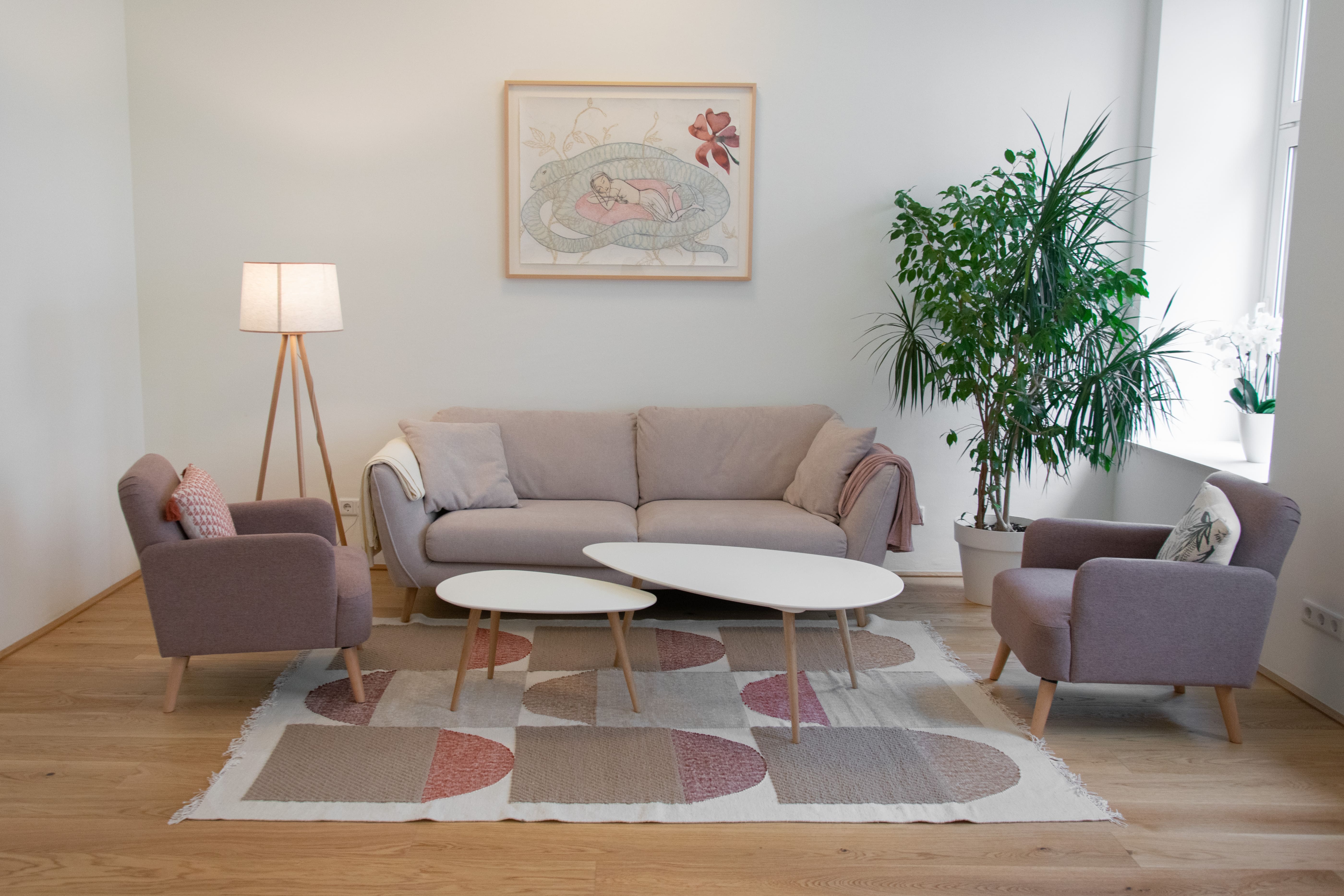 aufbauen. Um den verschiedenen Professionen gerecht zu werden, ist der Raum mit der unten genannten Basiseinrichtung ausgestattet. Diverse Adaptationen für ein individuelles Arbeitssetting sind so leicht möglich. In der restlichen Praxis (Bad, Klo, Warteraum mit Küchenzeile) haben wir uns bemüht eine wohnliche Atmosphäre zu schaffen, damit sich unsere Klienten fast wie zu Hause fühlen.