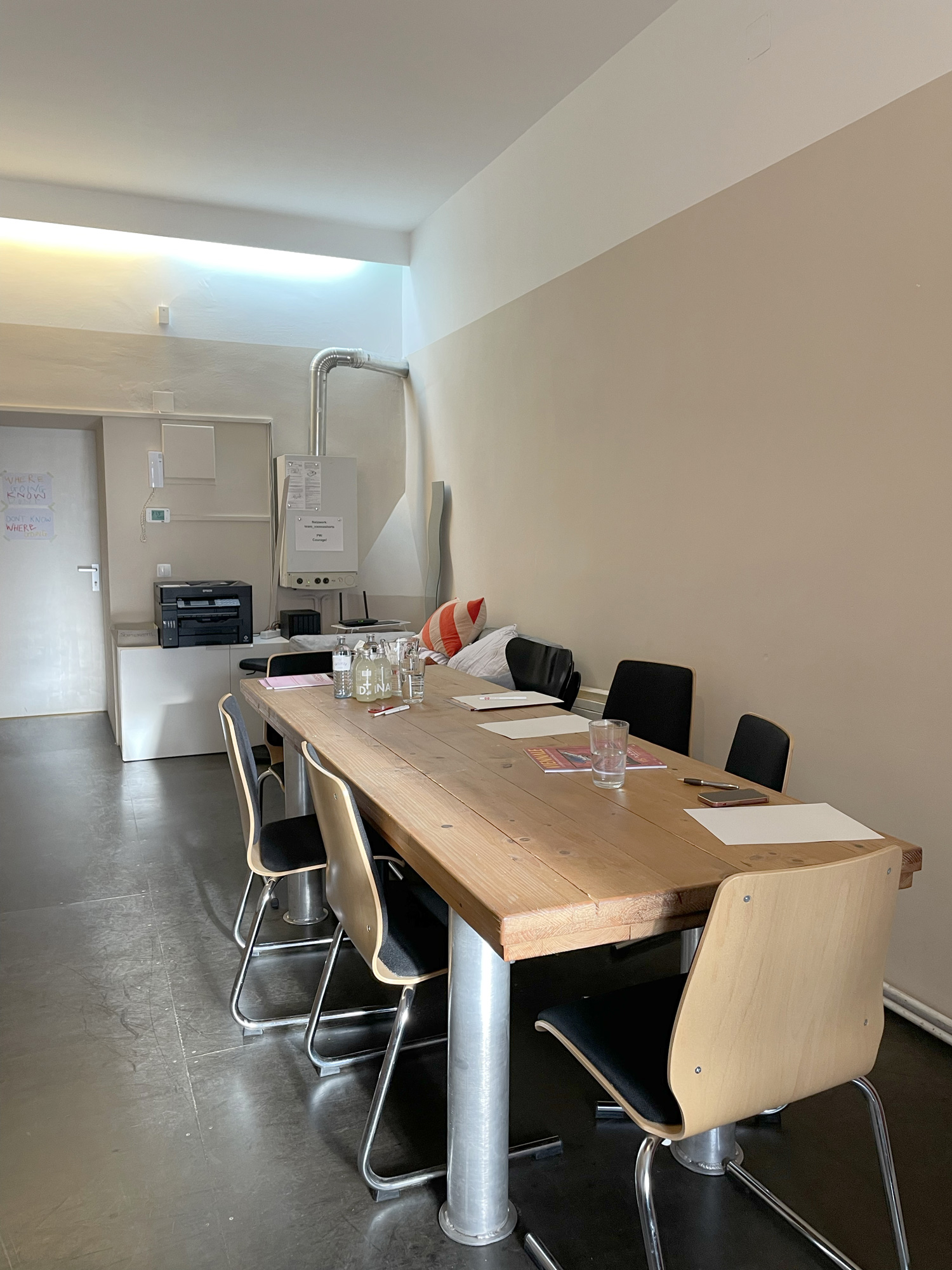 Als Untermieter des Vienna Shorts Kurzfilmfestivals nutzen wir einen Teil der Gesamtfläche als alleiniges Büro mit separatem Eingang. Besprechungs-/Aufenthaltsraum, Küche und WC werden gemeinsam genutzt. Das Büro wird alle zwei Wochen gereinigt.