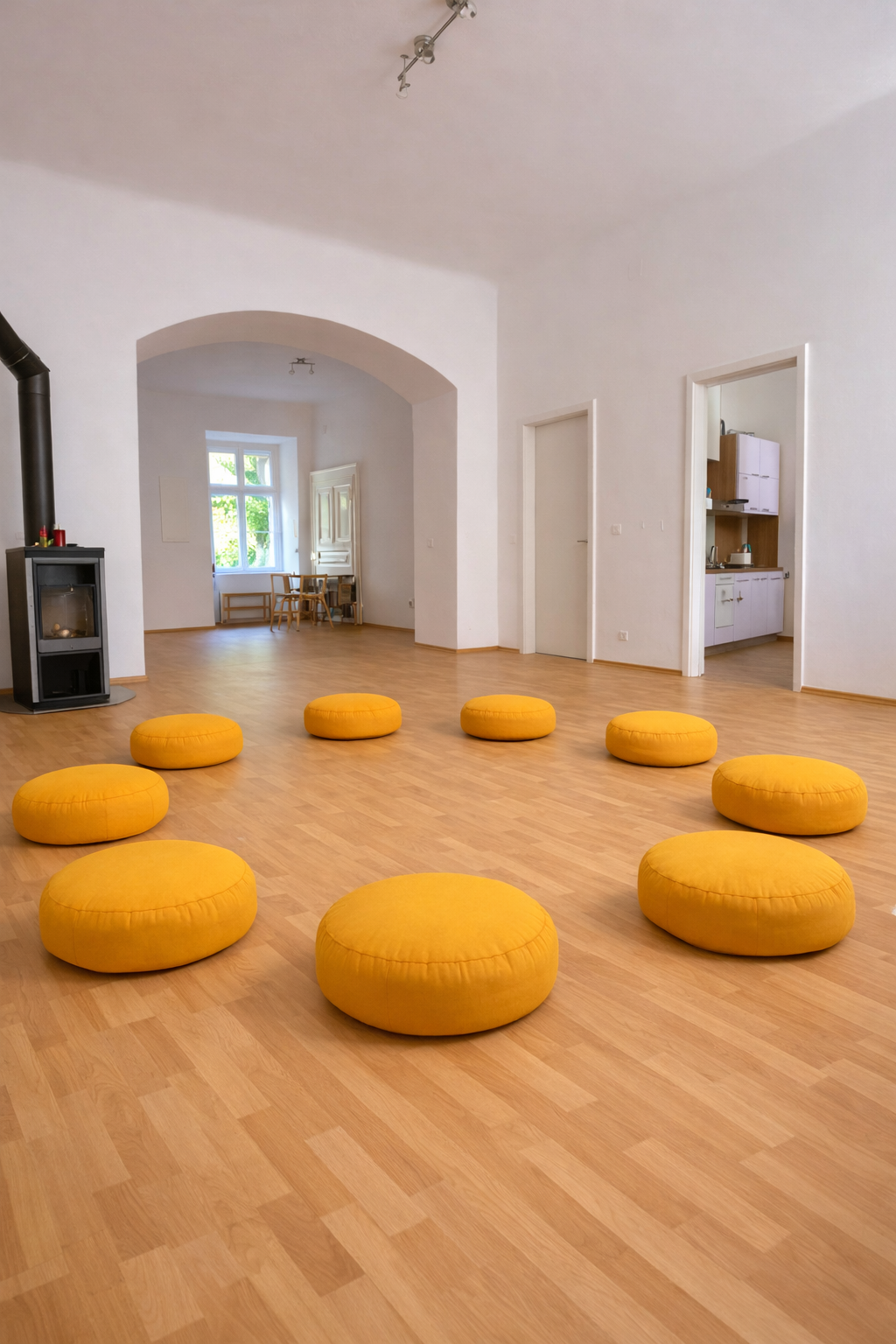 Der Raum wird von mir selbst sowie im Ausbildungskontext genutzt und ist entsprechend auf Körperarbeit, Yoga und praxisorientiertes Lernen ausgerichtet.