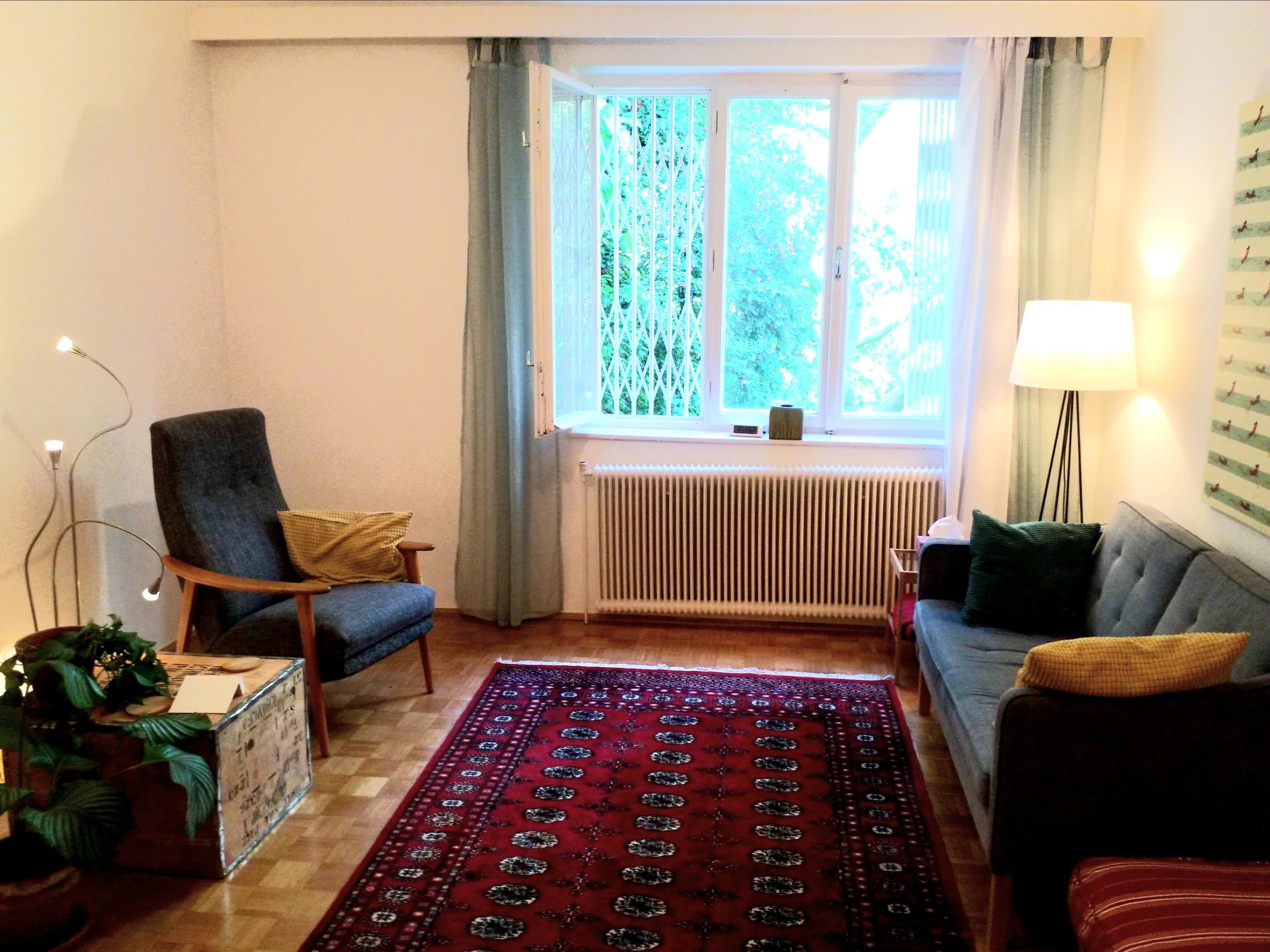 Der Raum hat 25 qm und ist für Einzel-, Paar- und Gruppentherapie geeignet.