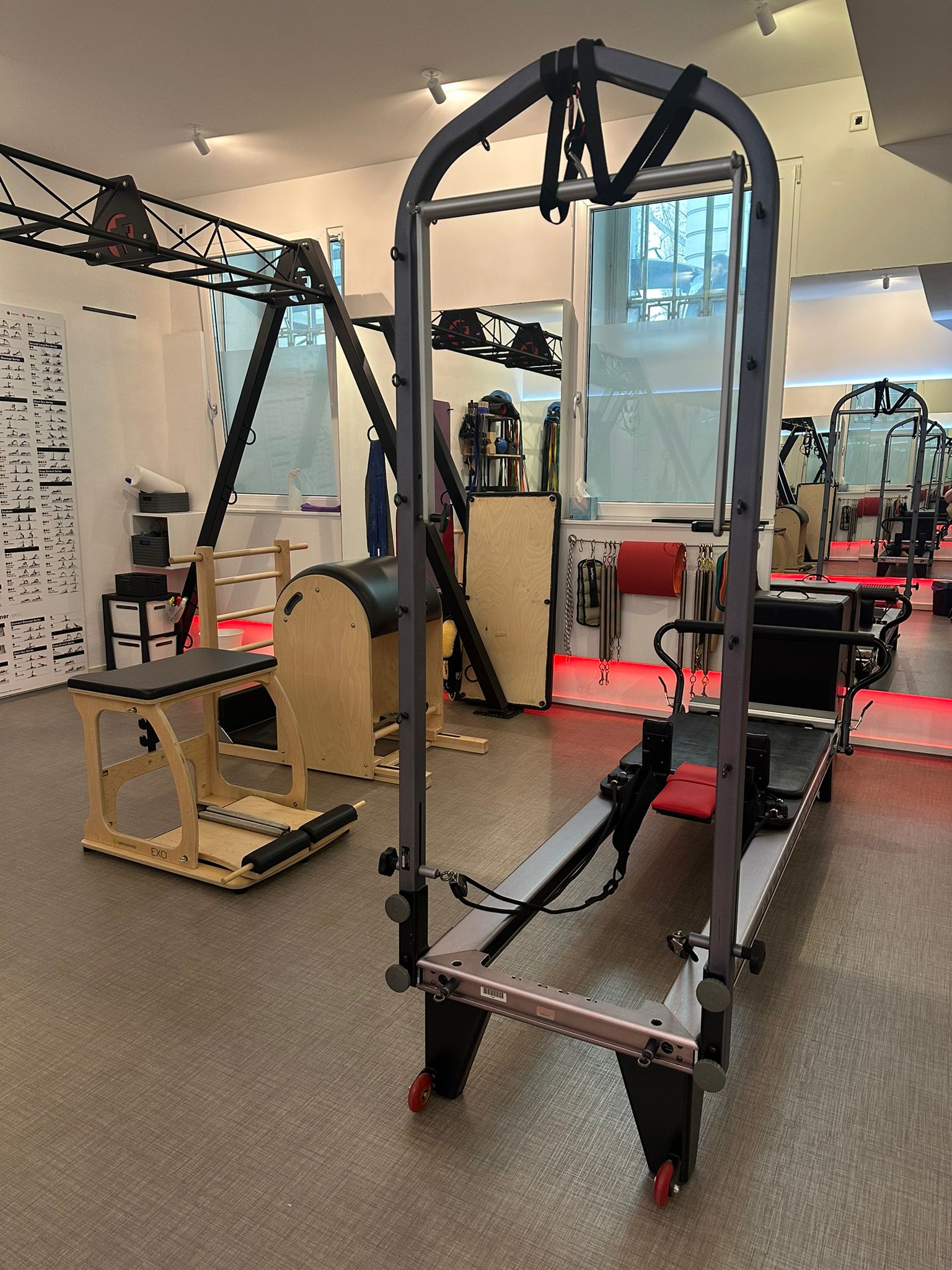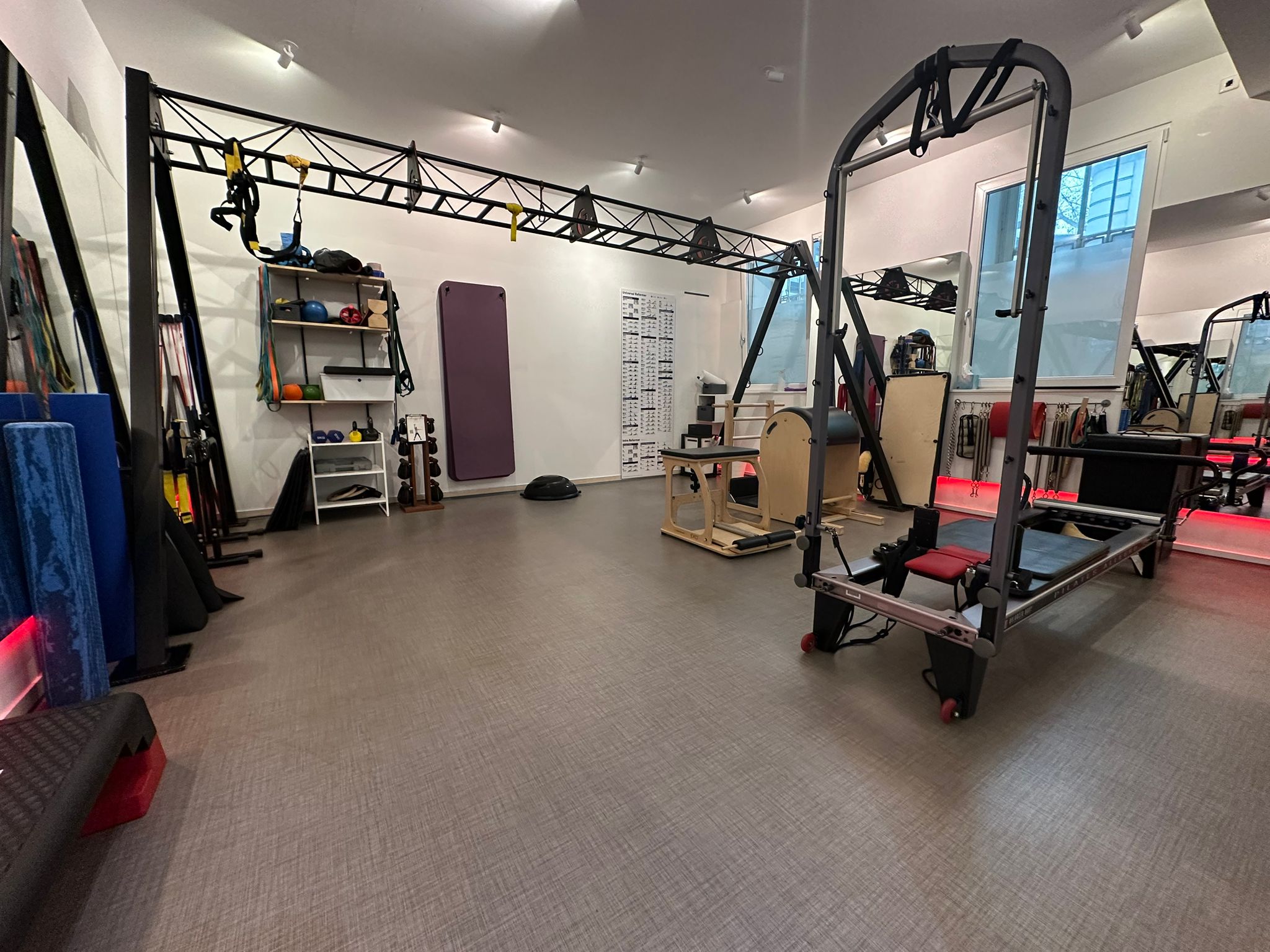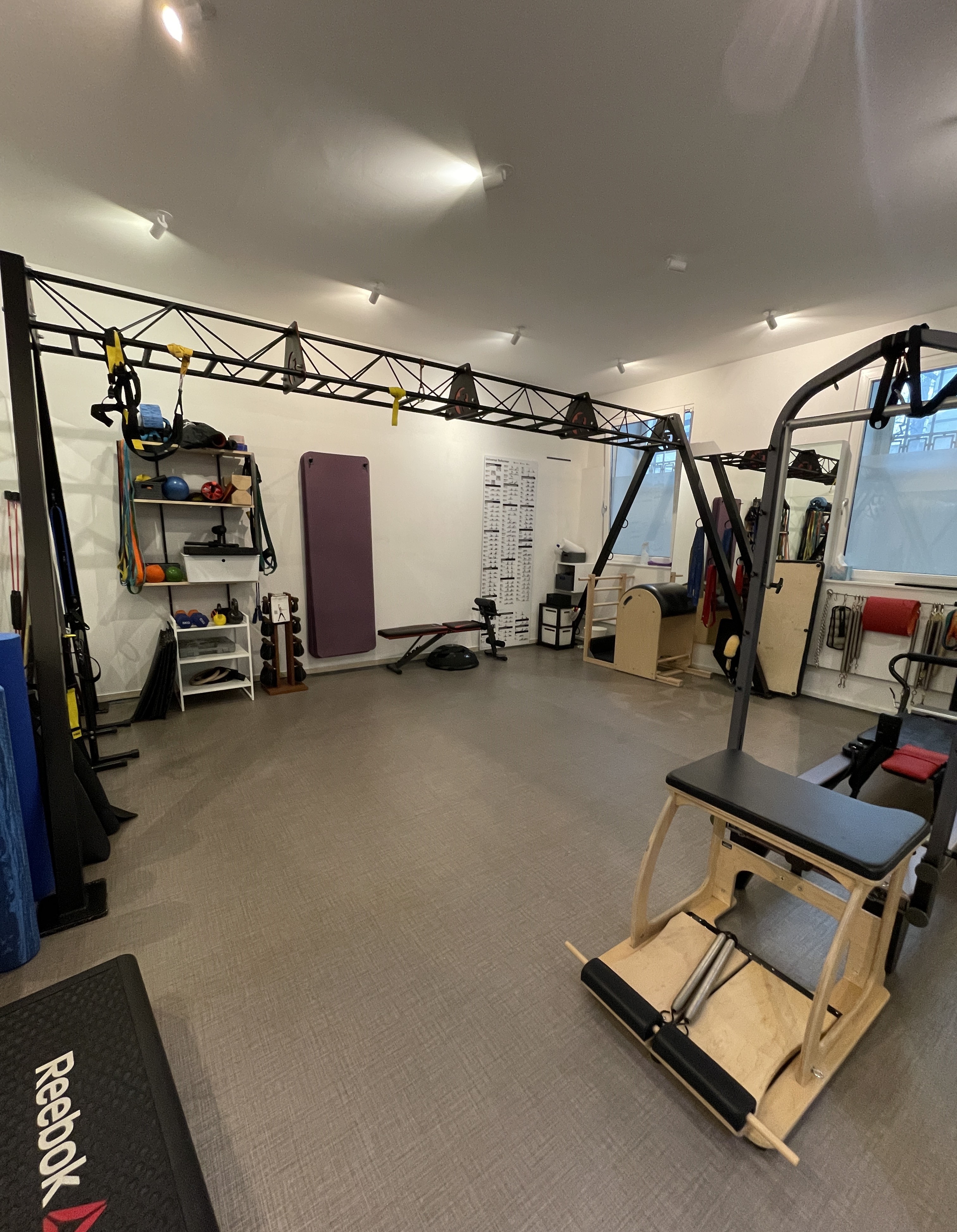 Der Raum ist mit TRX-Frame und einer Auswahl an funktionellen Fitnessgeräten ausgestattet, ist Klimatisiert und verfügt über Fußbodenheizung und Soundanlage.