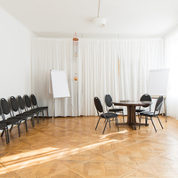Der Raum eignet sich für Einzelarbeit, Aufstellungsarbeit, Workshops, Seminare, etc. Kinobestuhlung bis zu 30 Personen, Sesselkreis bis 20 Personen, z.B. Yoga bis 10 Personen.