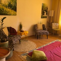 Ausstattung: Die Praxis besteht aus 4 Lounge-Chairs für Gesprächs-Runden, einem runden Tisch mit 4 bequemen Sesseln, 4 zusätzliche Klapp-Stühle, einer verstellbaren Massage-Liege, Shiatsu-Matte, & Abstell-Möglichkeit für eigenes Material.
