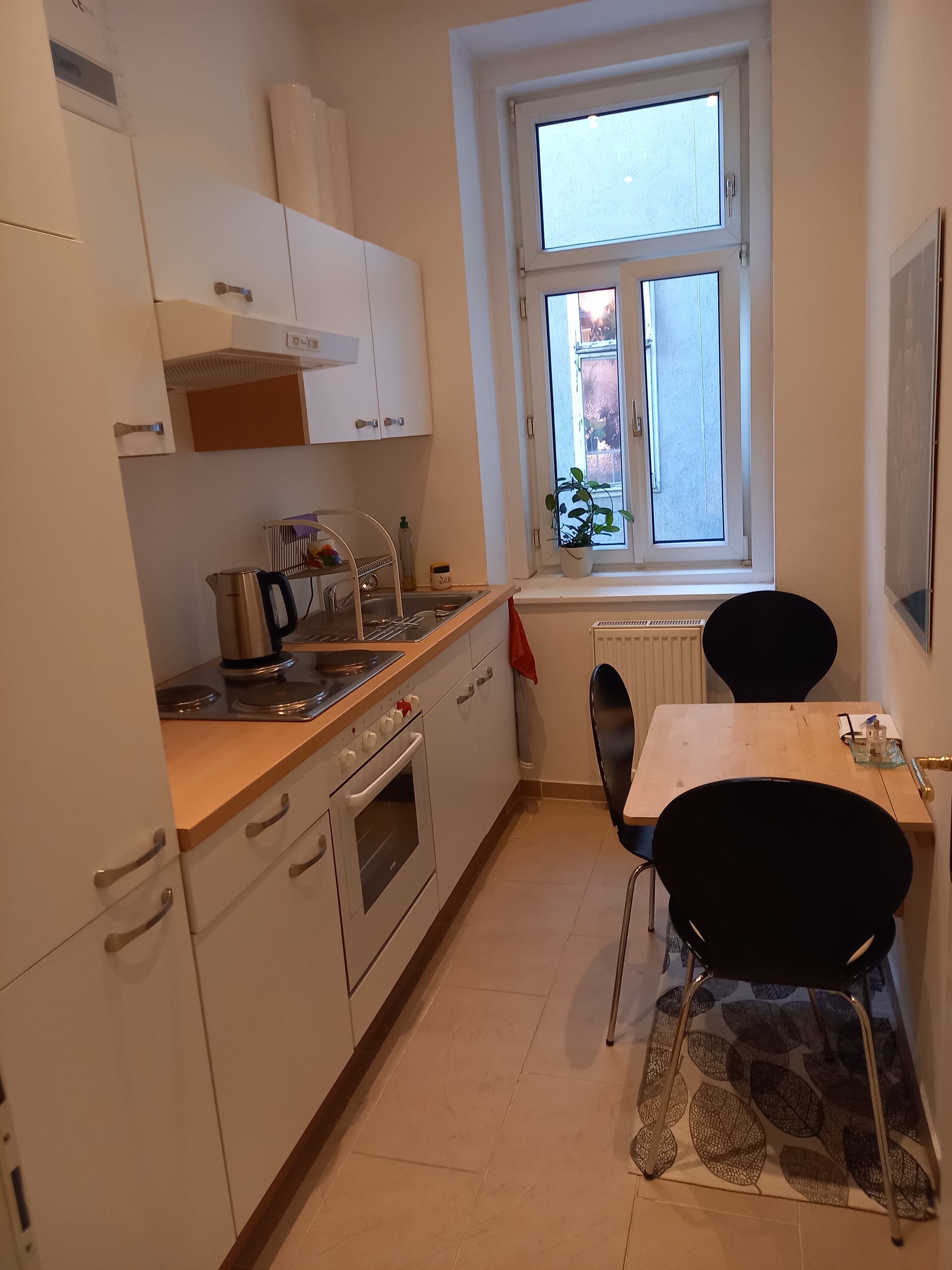 Die Miete inkludiert die Nutzung der gemeinsamen Küche, WC, Bad und Vorraum sowie Heizung und Reinigung.