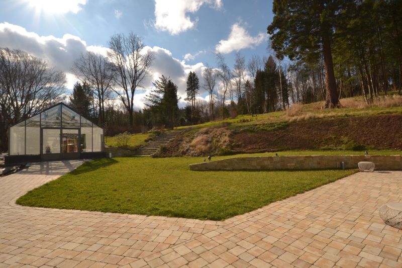 Eingebettet in eine 16.000 qm großes Areal mit altem Baumbestand, Blumenbeeten und Rasenflächen.