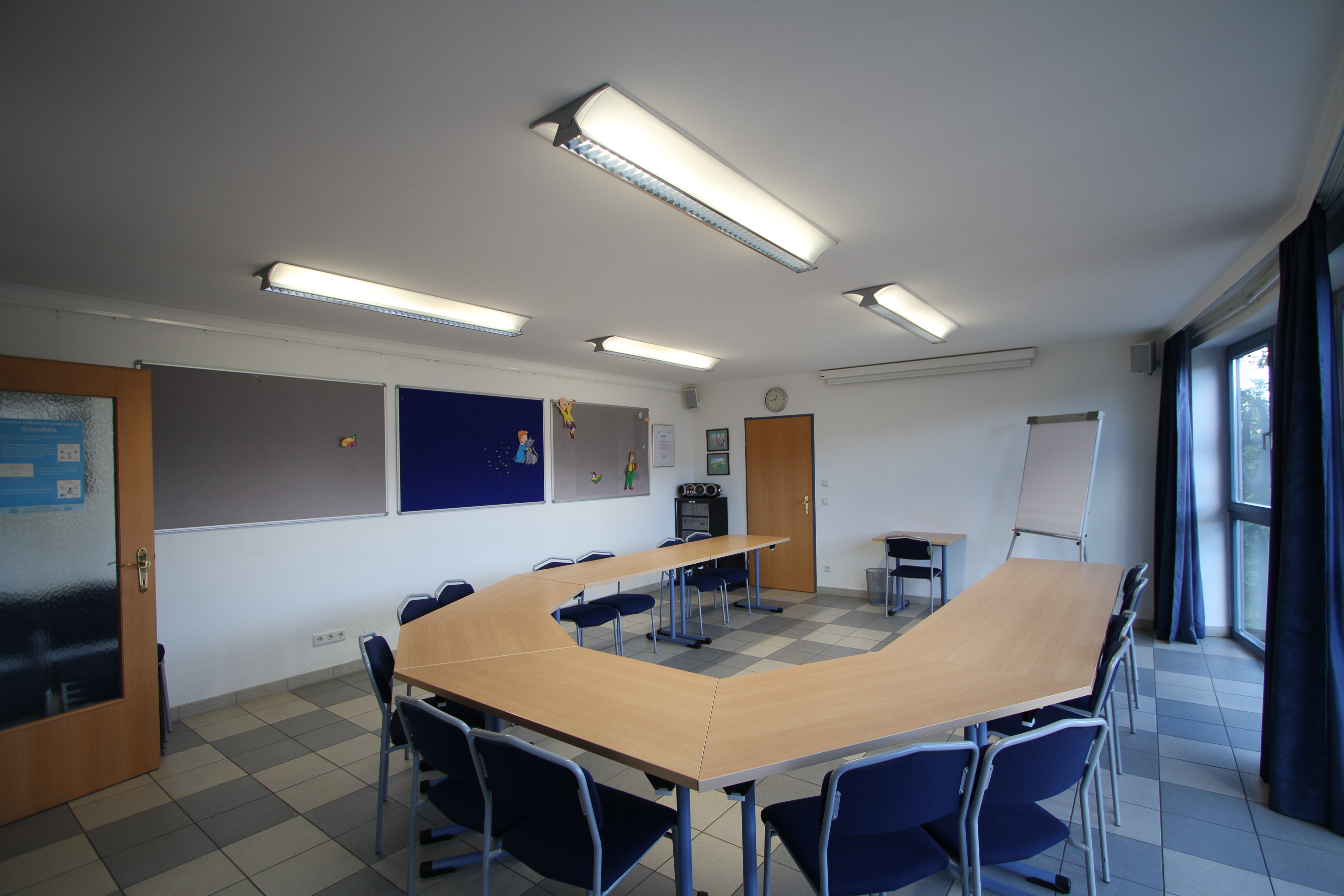 Im Seminarraum finden bis zu 22 Personen bei Theaterbestuhlung, bis zu 18 Personen in einem Sesselkreis und bis zu 14 Personen mit Tischen bequem Platz.