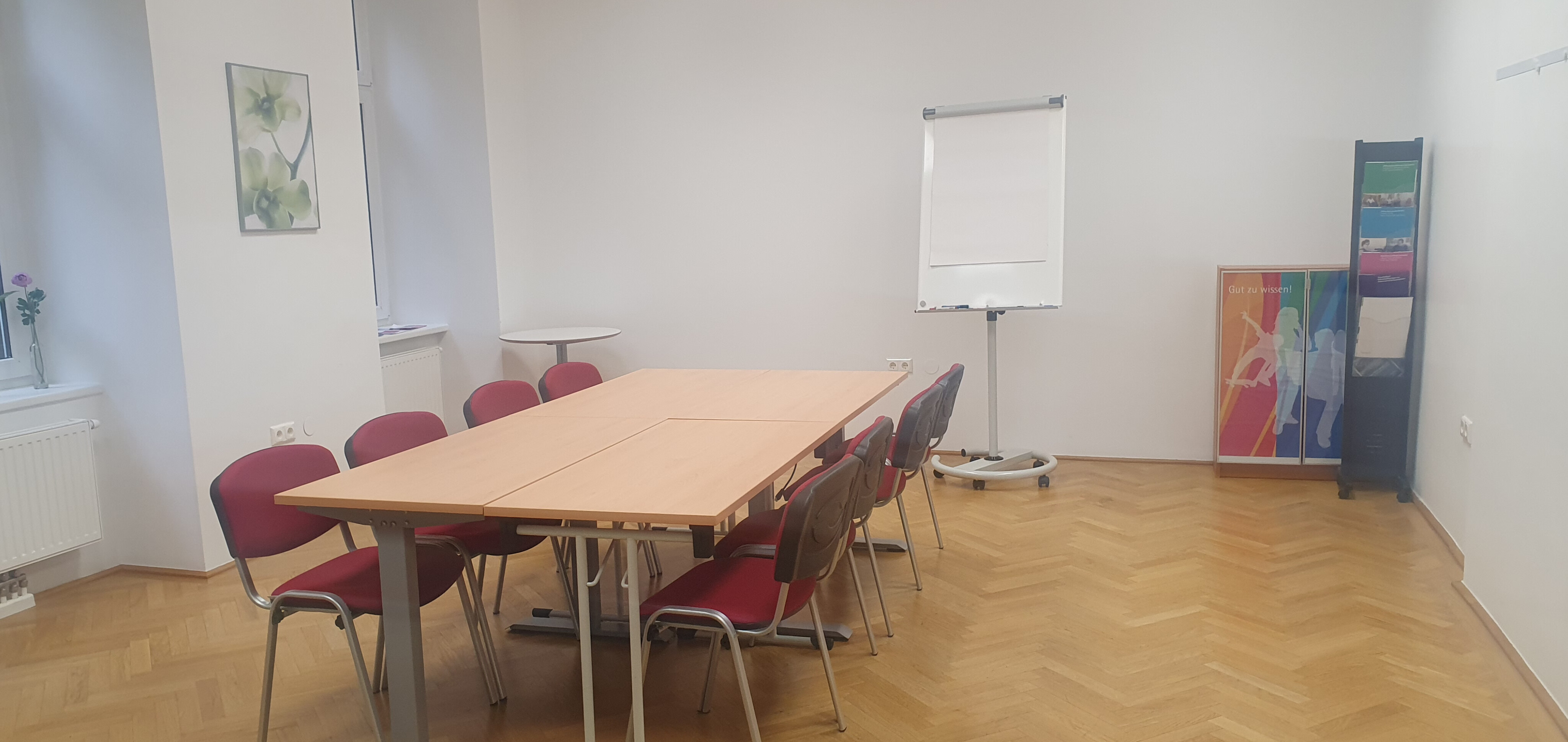 Wir vermieten unseren freundlich gestalteten Seminarraum am Wochenende – ideal für Besprechungen, Coachings oder Beratungen in kleinen Gruppen. Der Raum befindet sich in bester Lage direkt an der Mariahilferstraße, nur wenige Schritte von der U-Bahn-Station Zieglergasse entfernt.