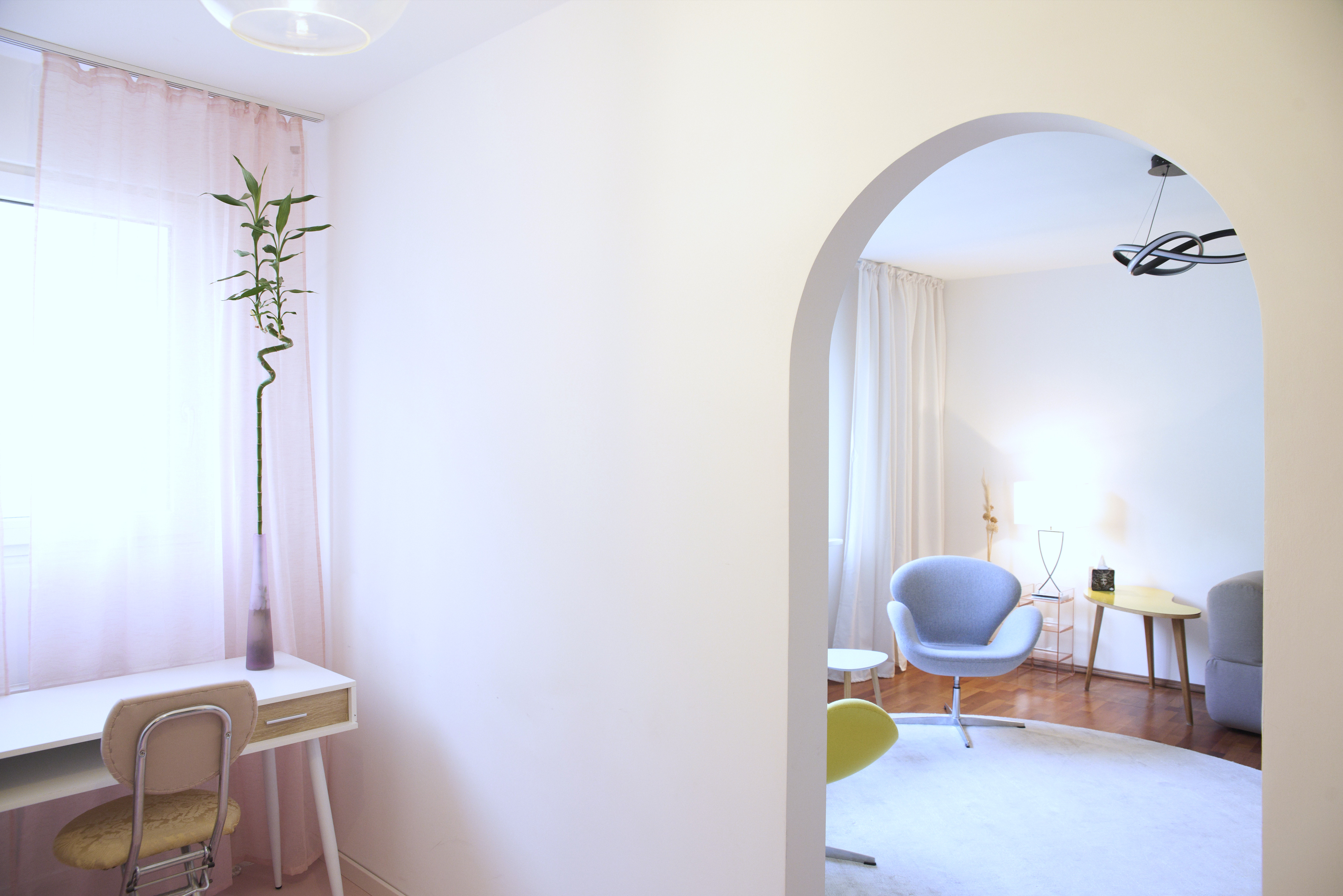 Ab sofort freue ich mich darauf, meinen neu renovierten und liebevoll gestalteten Praxisraum an sympathische Kolleginnen oder sympathische Kollegen zu vergeben. Die Nutzung ist ganztägig oder halbtags möglich.