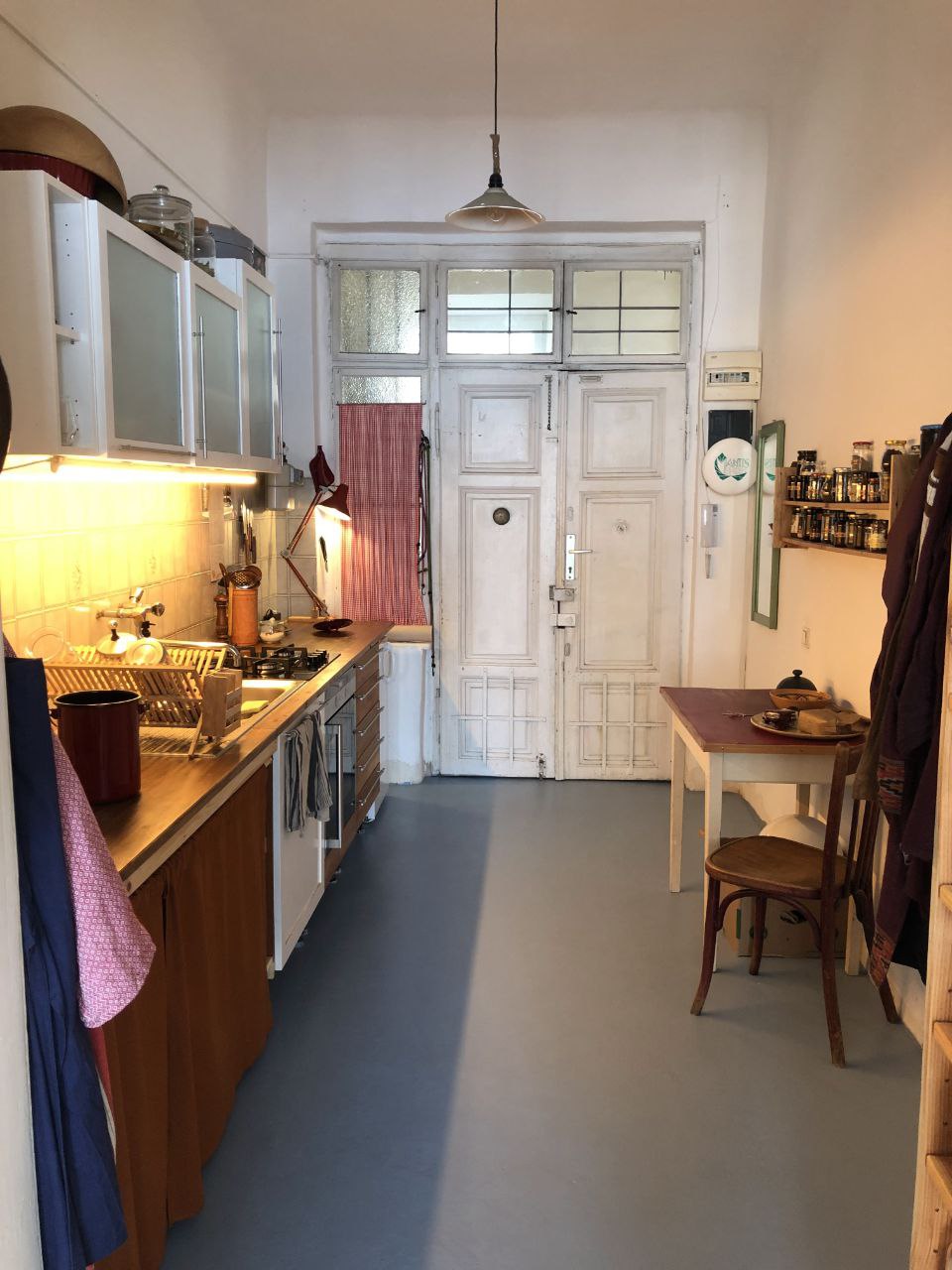 In der Wohnung gibt es auch eine Küche, Toilette und Dusche. Ein sehr nettes Haus und Nachbar:Innen und einen kleinen feinen begrünten Innenhof, in dem es sich im Sommer gut Kaffee trinken oder Mittagessen lässt : )
