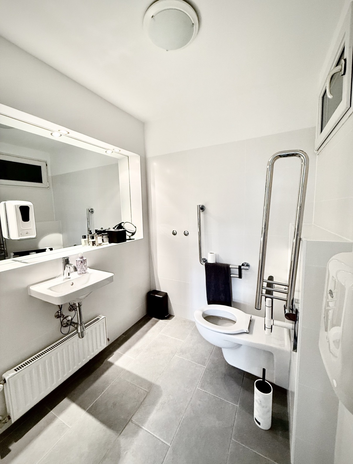Es steht eine Küche mit allen Utensilien zur Verfügung, zwei Toiletten, eine davon behindertengerecht, ein geräumiges Badezimmer und ein Vorraum.