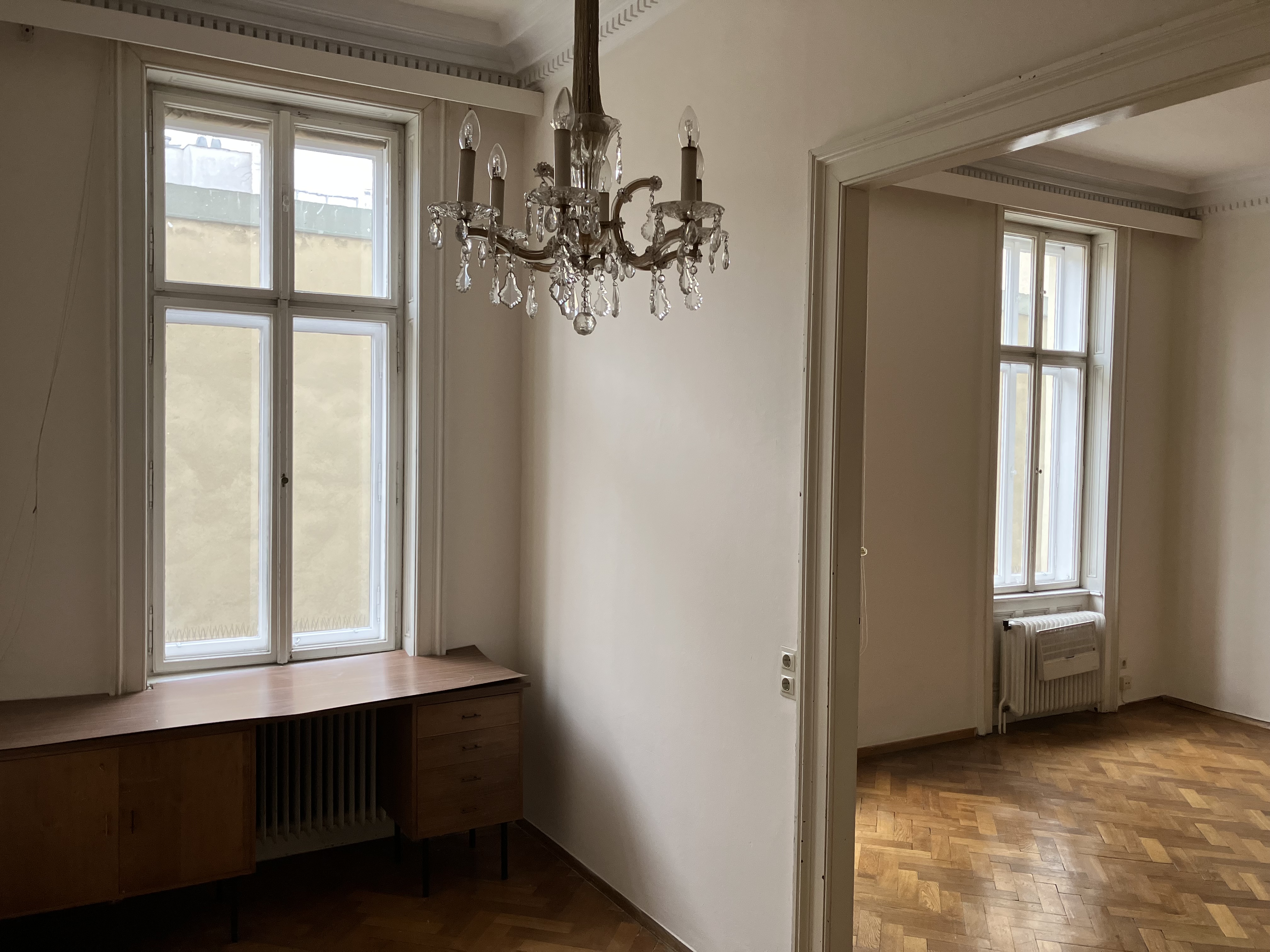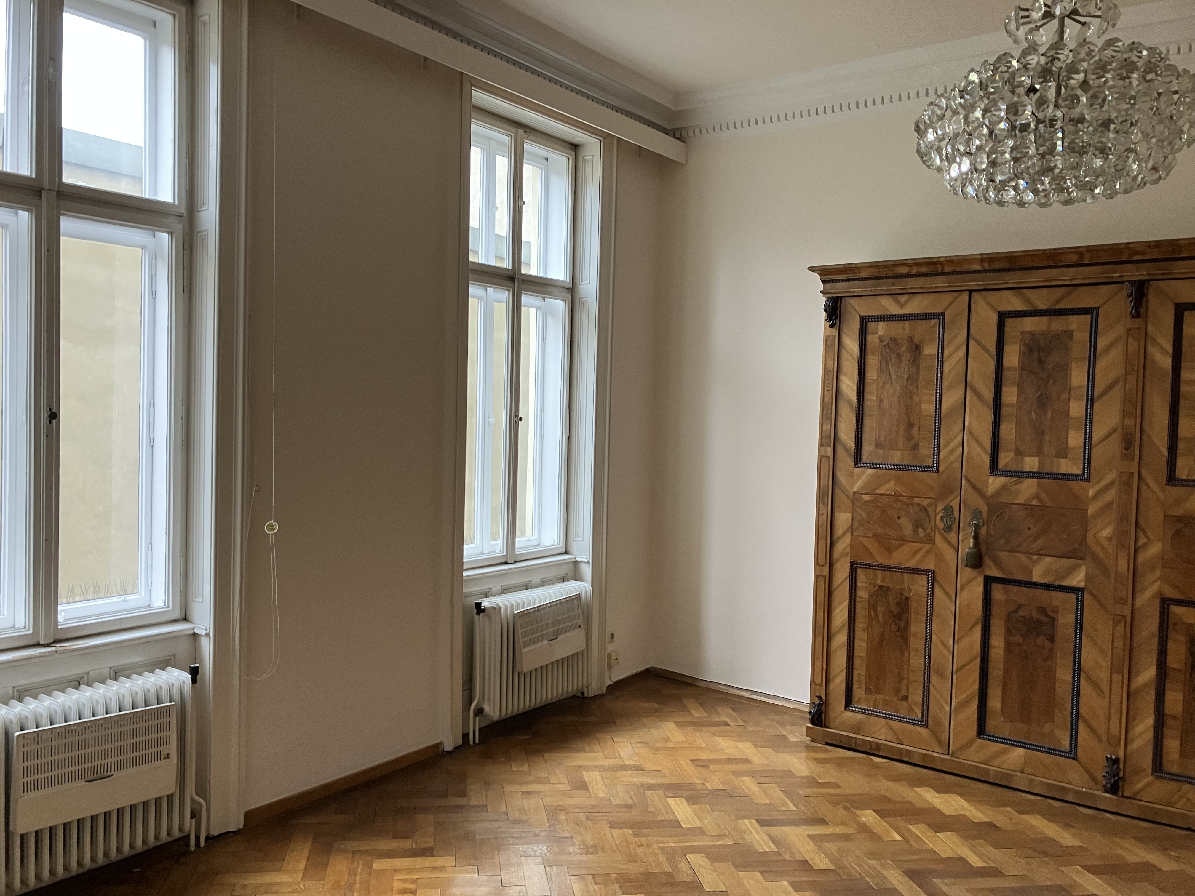 Aktuell steht ein Raum mit angrenzendem Kabinett (Gesamtfläche etwa 40m2) zur alleinigen Nutzung und individuellen Gestaltung frei. Parkettboden und frisch ausgemalte Wände.