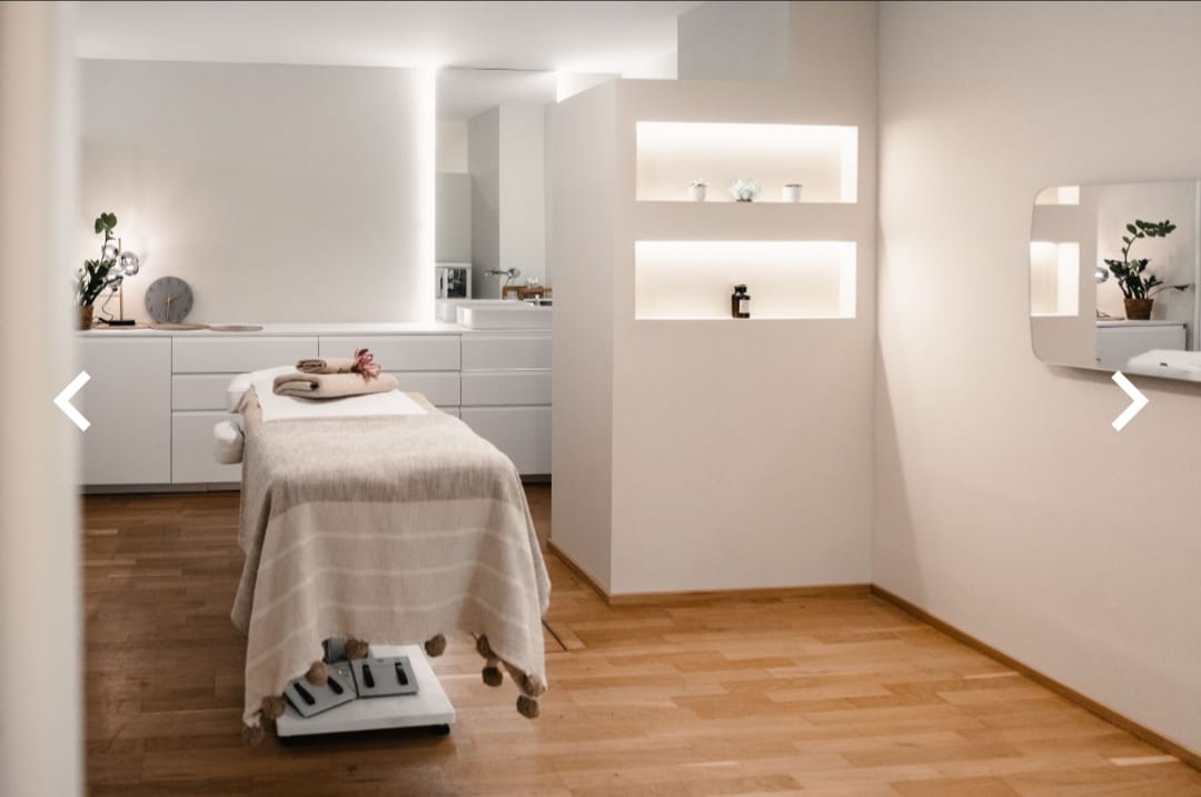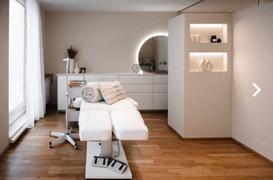 Heller, modern eingerichteter Raum mit sehr guter Beleuchtung, integrierter Lüftung, angenehmer Atmosphäre und proffessioneller Ausstattung. Kosmetikliege zur Mitbenutzung, hochwertiges Waschbecken, Hot Cabi zum Handtuchwärmen, kleiner Kühlschrnank im Behandlungsraum, Mitbenutzung einer Küche für private Zwecke sowie eines Badezimmers mit Dusche.