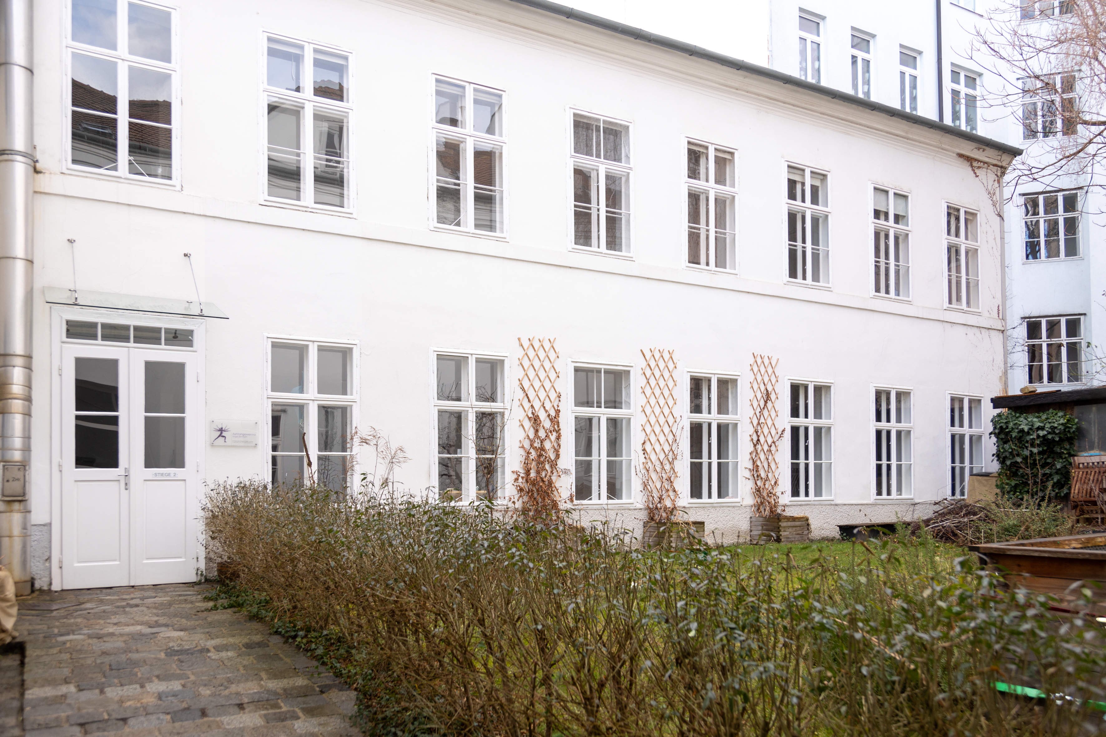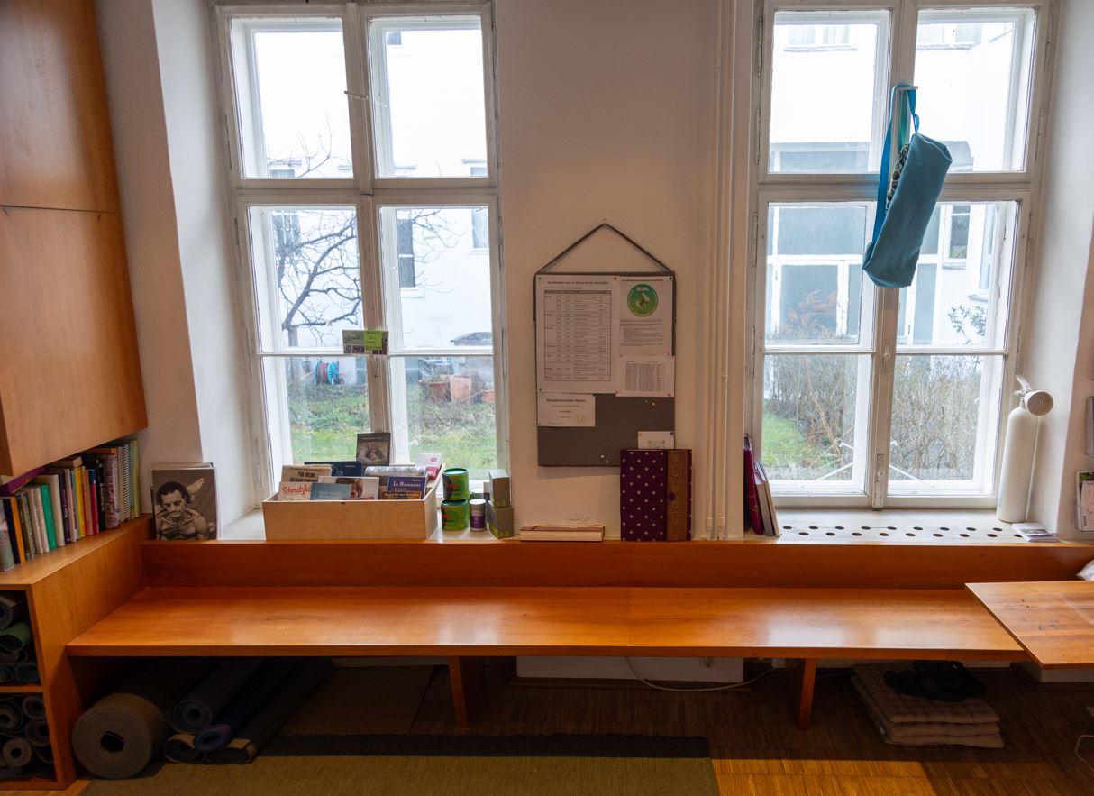 Das Besondere an der Lage unseres Yogazentrum ist, dass es sich in einem hellen und sehr ruhigen Innenhof befindet. Danke eines liebevollen gepflegten Gartens hat man einen wundervollen Blick ins Grüne.