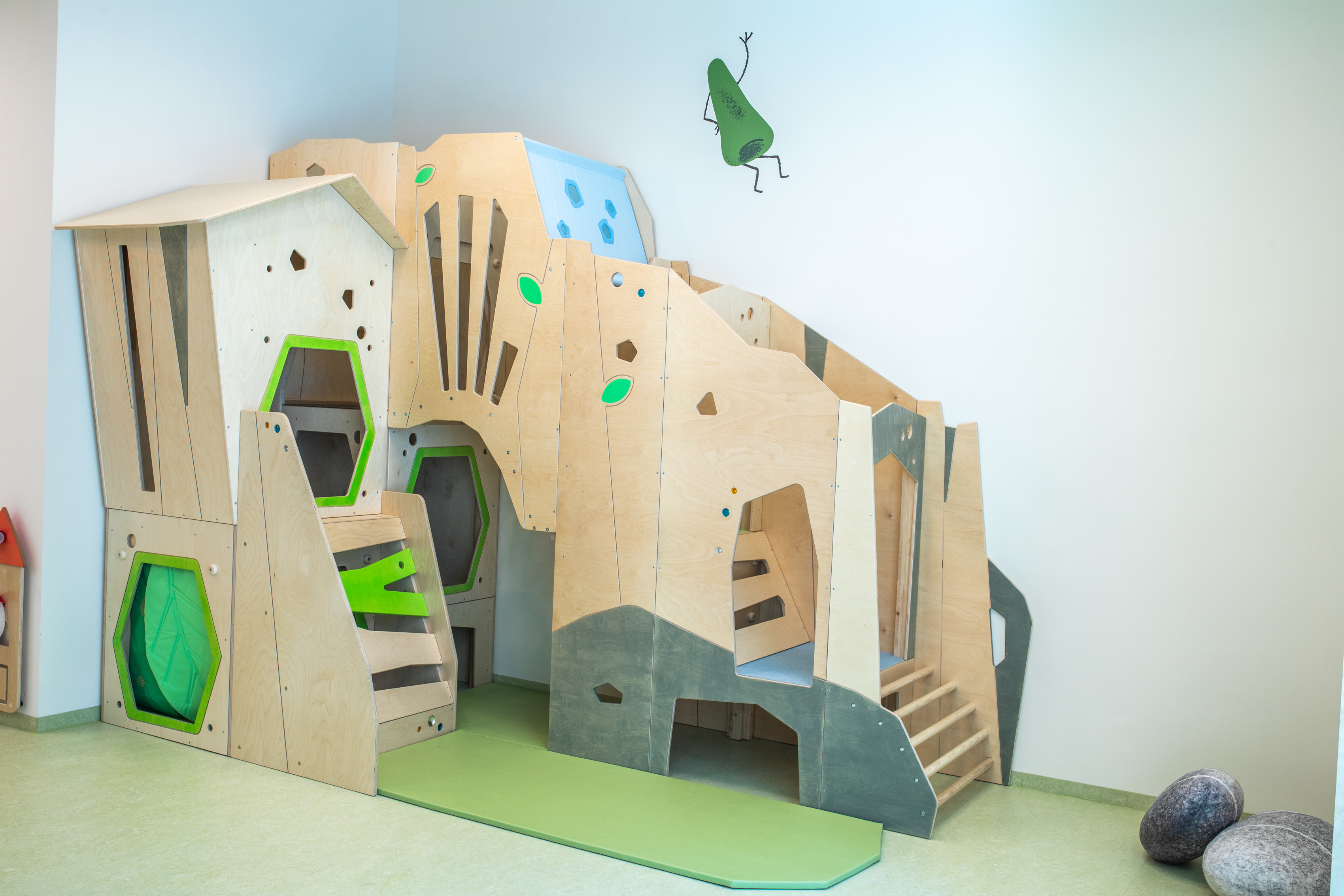 Unser offener Spielbereich ist mit einer interaktiven Wand und einer kinetischen Wand ausgestattet, die den Kindern endlose Möglichkeiten zum Spielen, Toben und Entdecken bieten. Hier können sie ihre motorischen Fähigkeiten entwickeln, ihre Kreativität entfalten und neue Freundschaften schließen.