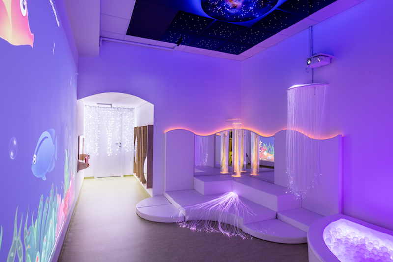 Ein weiteres Highlight in MuSe ist der Snoezelraum. Dieser Raum ist speziell gestaltet, um den Kindern eine entspannte und beruhigende Atmosphäre zu bieten. Mit sanftem Licht, angenehmer Musik und beruhigenden Texturen können die Kinder hier zur Ruhe kommen und sich entspannen.