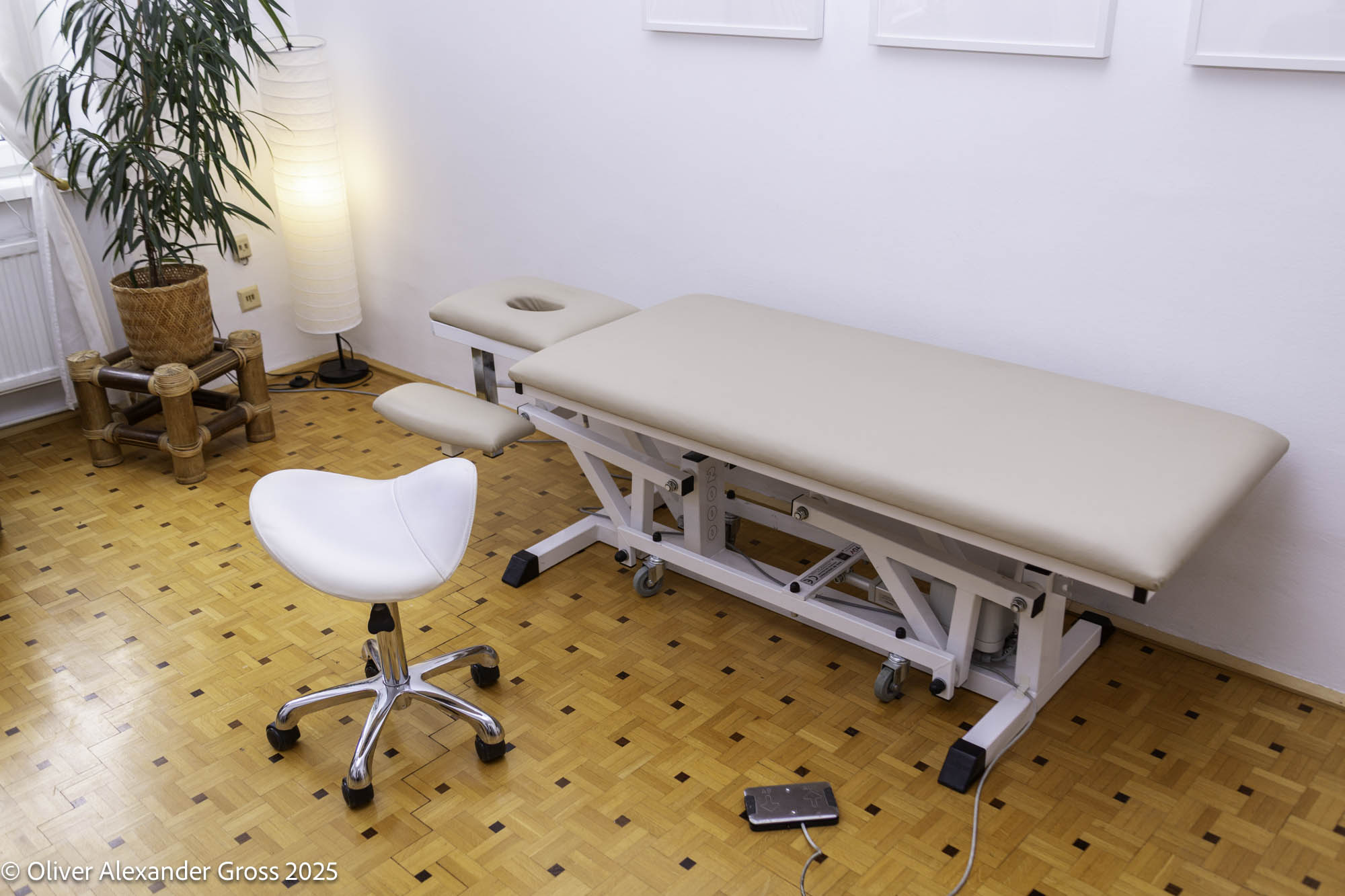 Besonderes Ausstattungs- Extra: Profi- Massageliege, die bequem elektrisch höhenverstellbar ist und gern auch genutzt werden darf