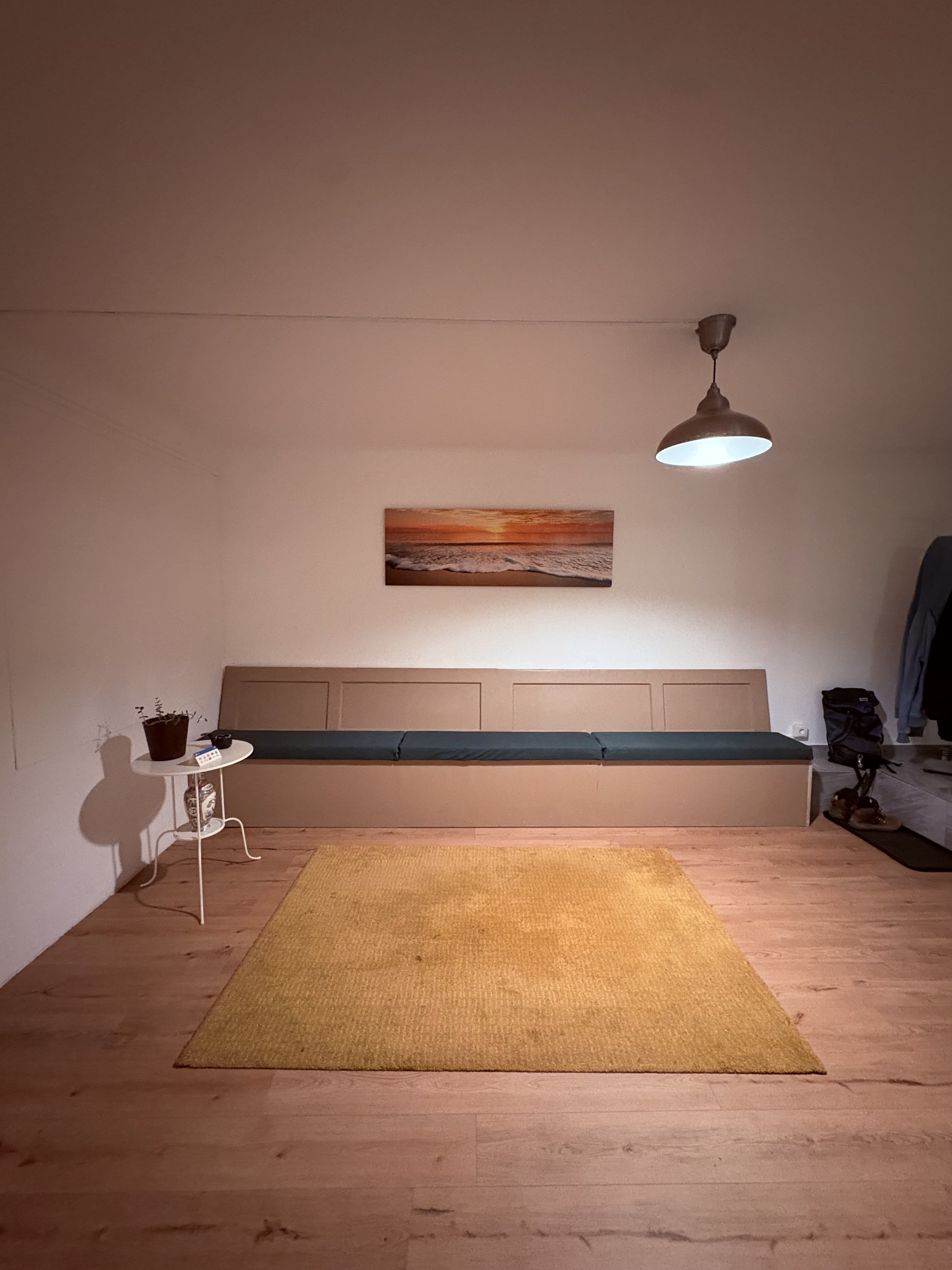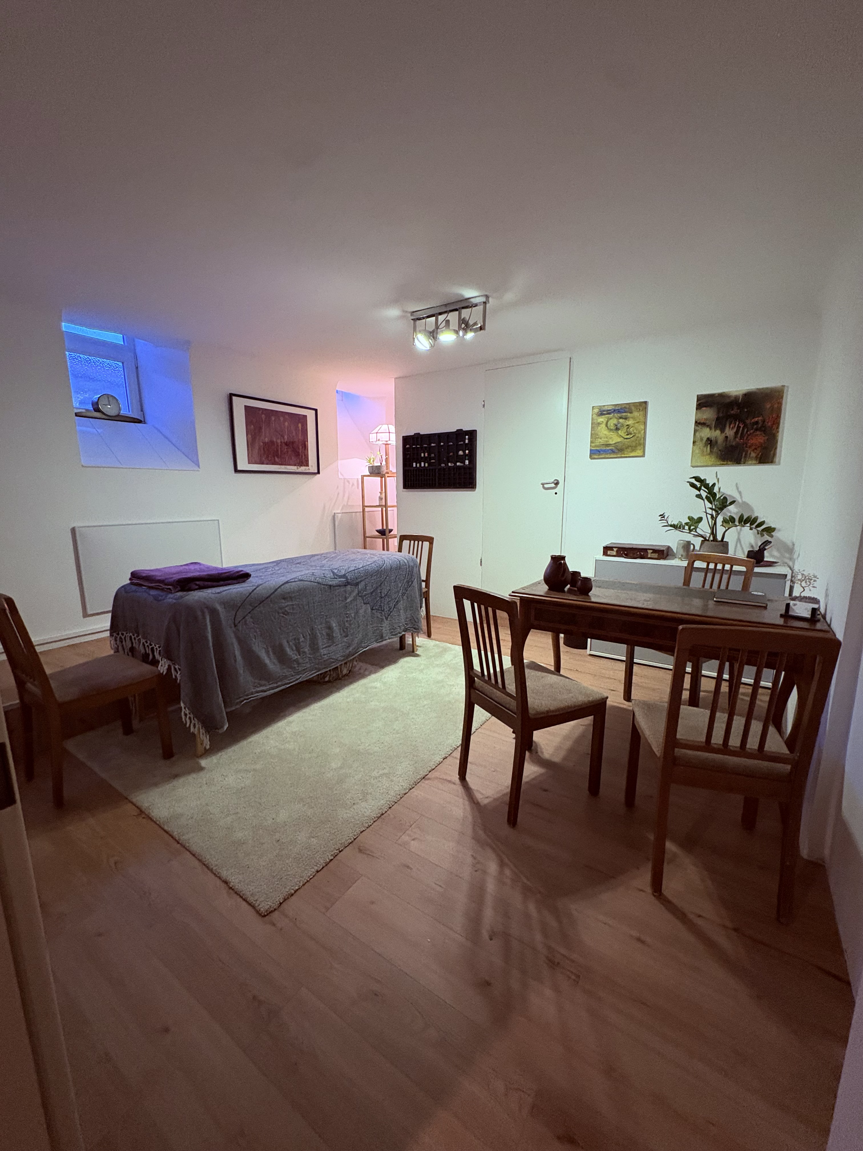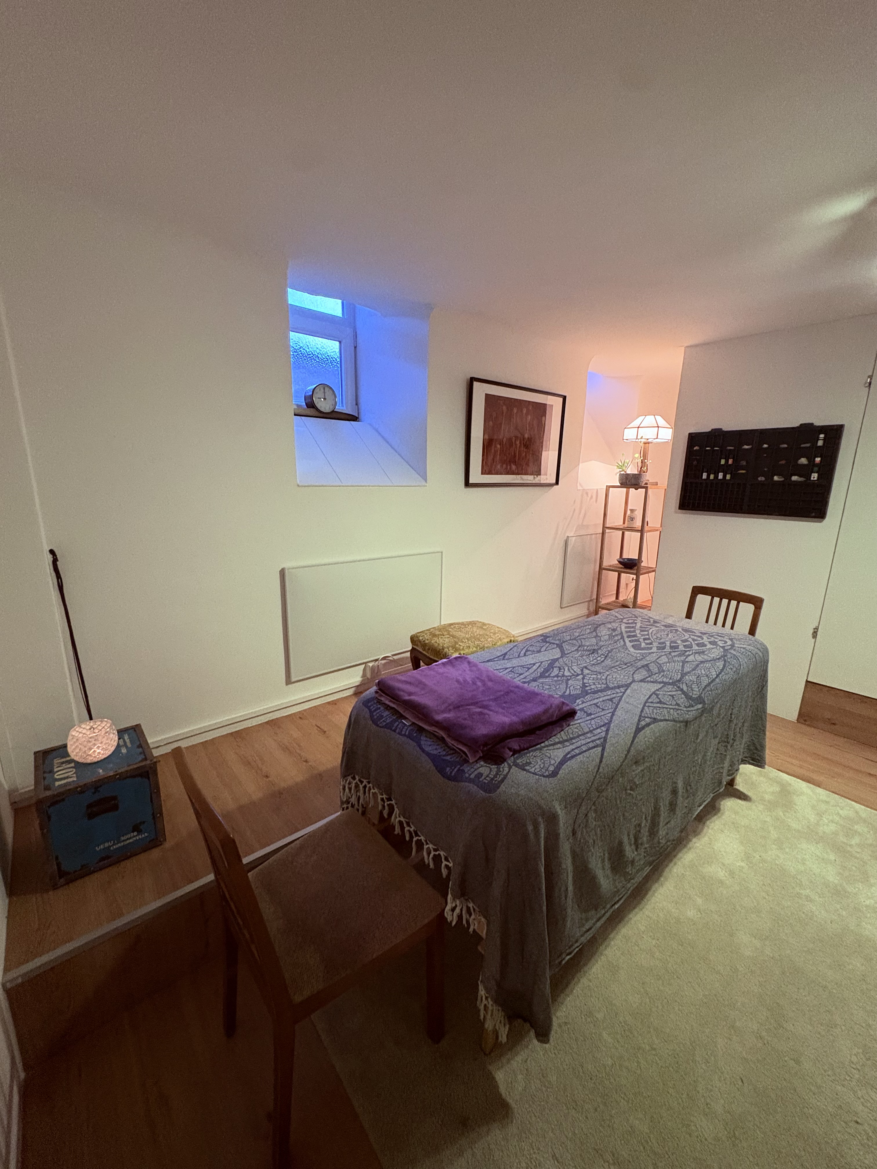 Der Raum wird von mir für meine Cranio-Sacral-Praxis genutzt und steht zusätzlich zur Miete für Yoga, Therapie und achtsame Körperarbeit zur Verfügung.