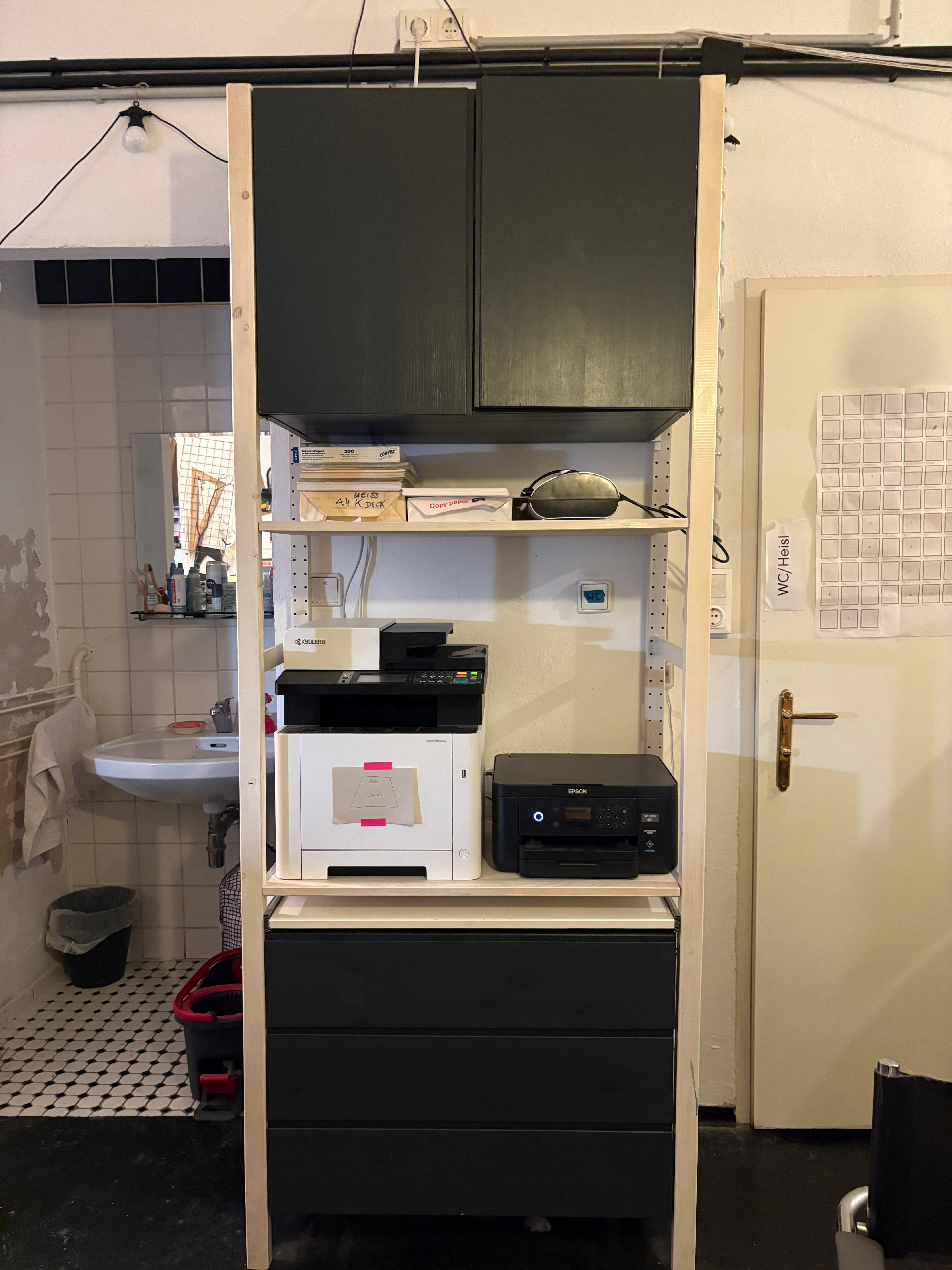 Mitbenutzung von Gemeinschaftsraum, Küche (Herd mit Ofen, Toaster, Wasserkocher, Kaffeeküche, Mikrowelle, Kühlschrank), WC, Dusche, Heizung, Papierstation mit Laserdrucker, Werkbank.