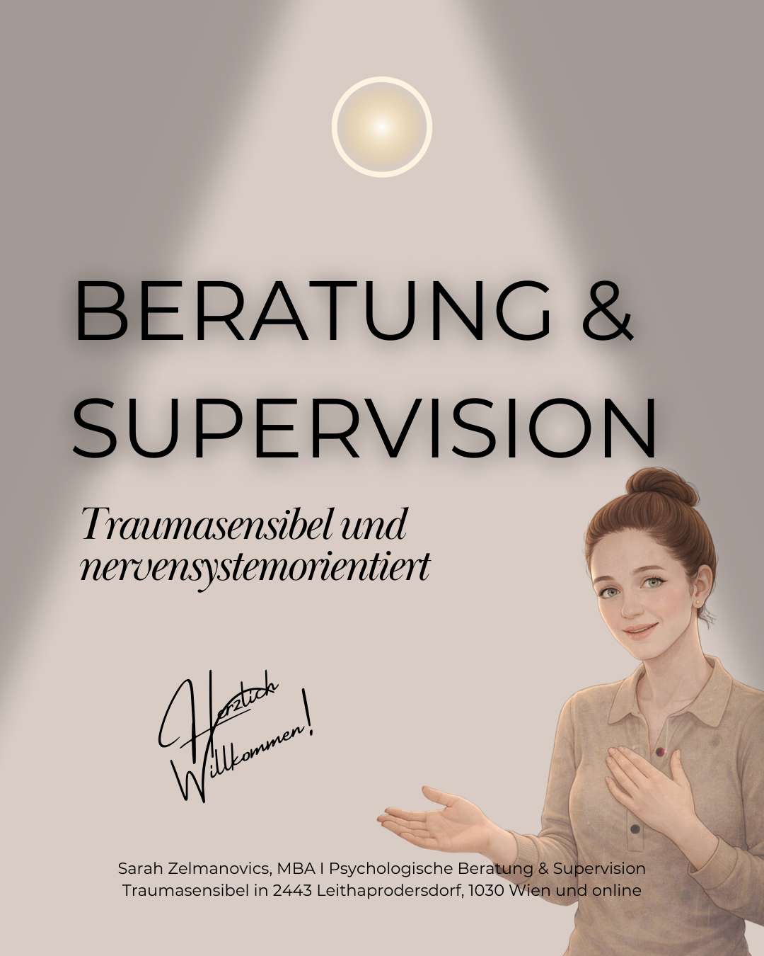 Ich bin Sarah Zelmanovics – zertifizierte Counselorin (BVPPT) und Psychologische Beraterin mit Schwerpunkt auf traumasensibler und nervensystemorientierter Begleitung von Jugendlichen und Erwachsenen; aktuell in Ausbildung zur Supervisorin – in Leithaprodersdorf, Wien und online. ​Ich biete dir einen geschützten Raum für deine privaten und beruflichen Themen. Ob in Krisen oder wenn sich etwas nicht mehr stimmig anfühlt: Gemeinsam finden wir deinen Weg zu mehr Stabilität und innerer Balance. ​​Sanft. Flexibel. In deinem Tempo. Weitere Information: kontakt@sarahzelmanovics.at