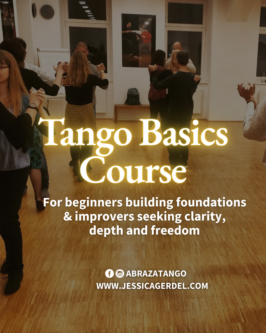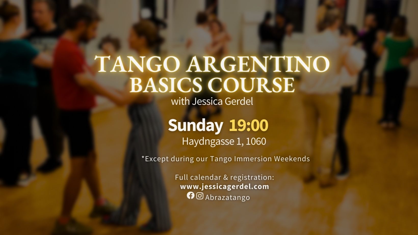 PS. The Tango Basics Course doesn't include classes on March 8 and April 19 because of Jessica's Tango Immersion Weekends. She'll guide you on which workshops are suitable for your level if you want to join those weekends too.