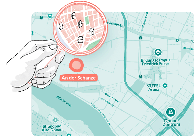 Im Quartier „An der Schanze“ im 21. Bezirk, gleich hinter der Alten Donau, ziehen bald 5000 Bewohner*innen ein.