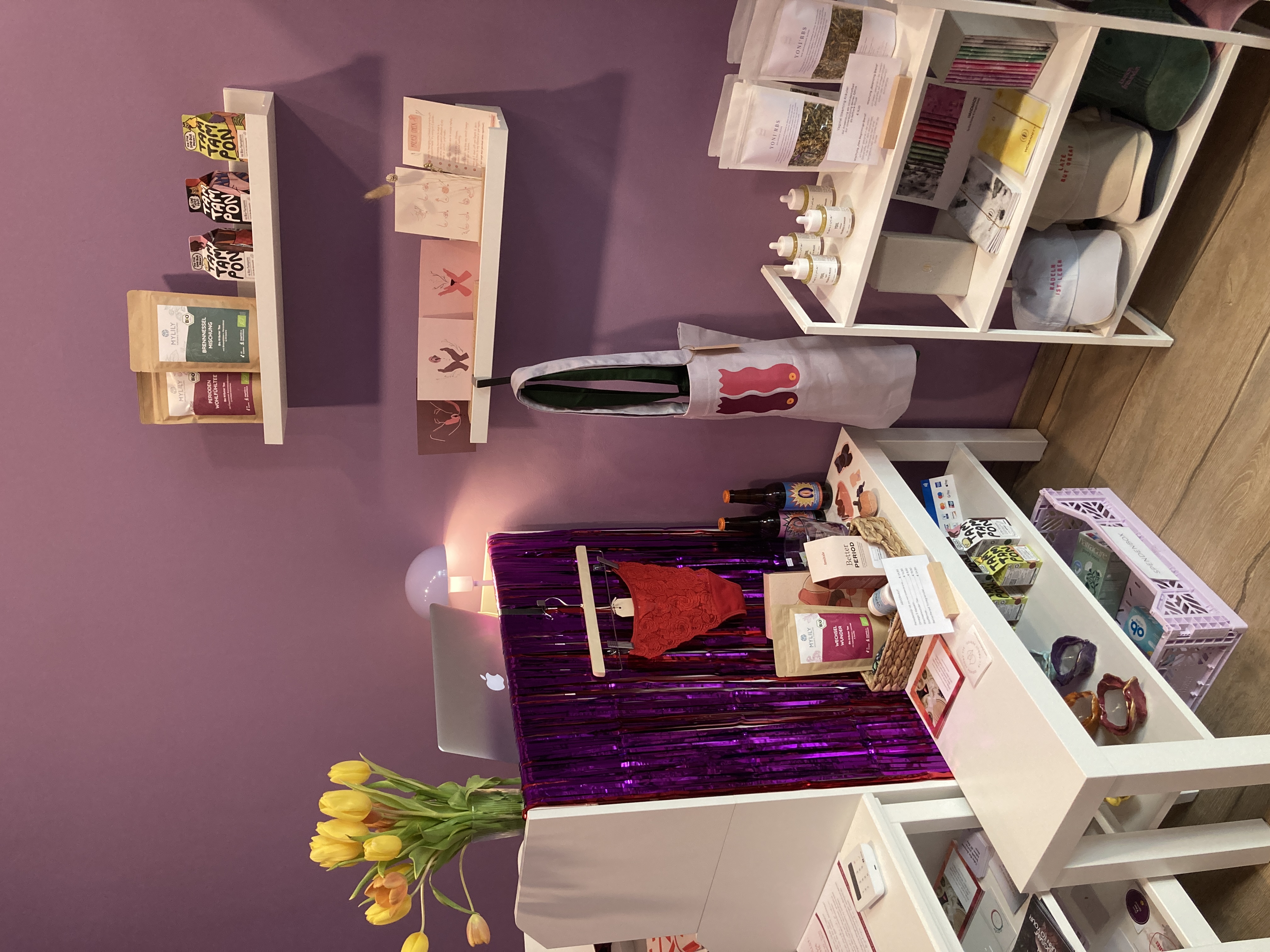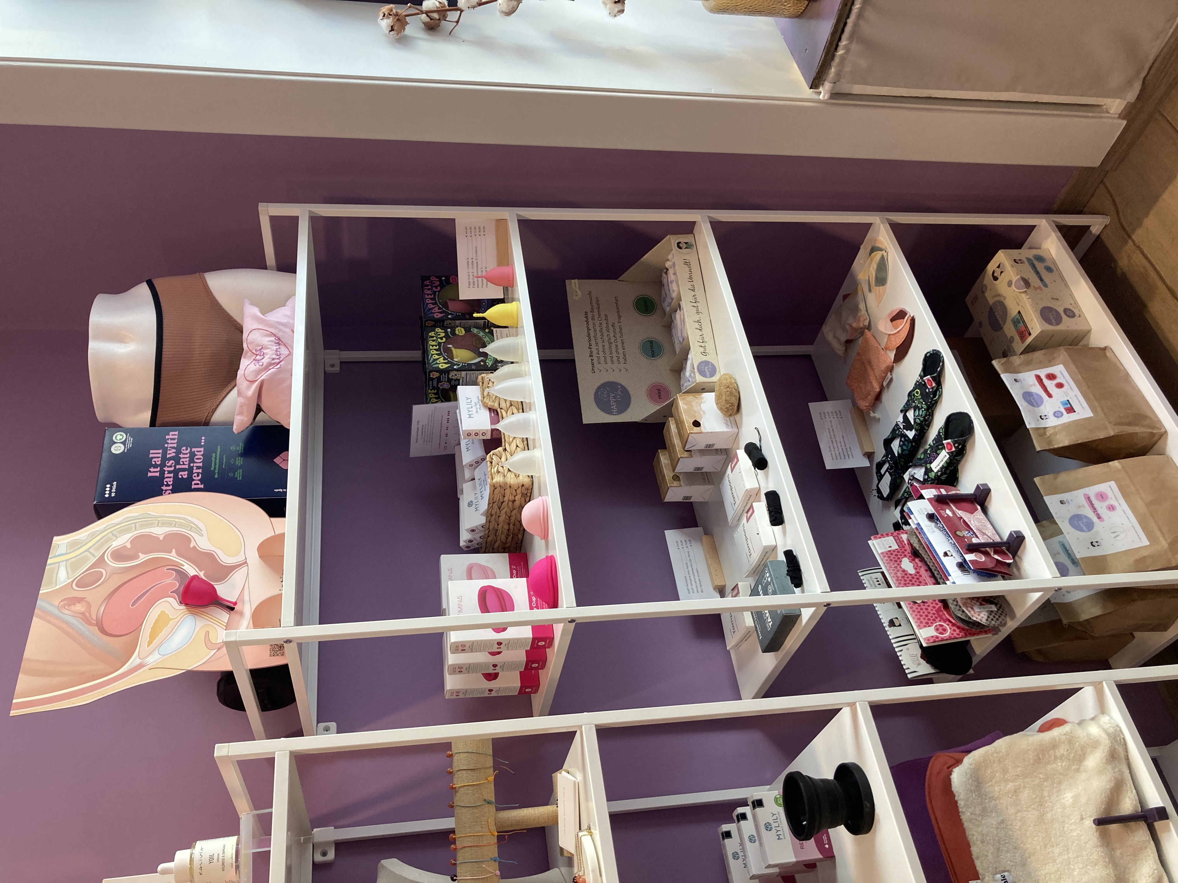 Bei all about period. gibts alles rund um die Periode und den weiblichen Zyklus - Periodenunterwäsche, Menstruationstassen, Stoffbinden, Bio-Tampons, Tees, Kräuter, Bücher, feministische Kunst usw., inklusive persönlicher Beratung und die Möglichkeit die Produkte anzufassen/anzuprobieren. Außerdem bieten wir unterschiedliche Events an, zum Beispiel Yoni Steaming Circles, First Period -und Aufklärungsworkshop,...