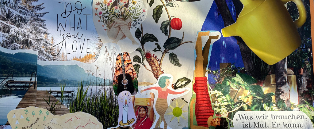 Ein Visionboard ist ein wunderbares kreatives Tool, um deine Herzenswünsche, Sehnsüchte und Träume zum Leben zu erwecken. In einer Collage aus Bildern, Texten und Symbolen machst du sichtbar, was du dir für dein Leben wünschst – seien es materielle Dinge, Erlebnisse, Beziehungen, Gefühle, Gesundheit, Arbeit etc.