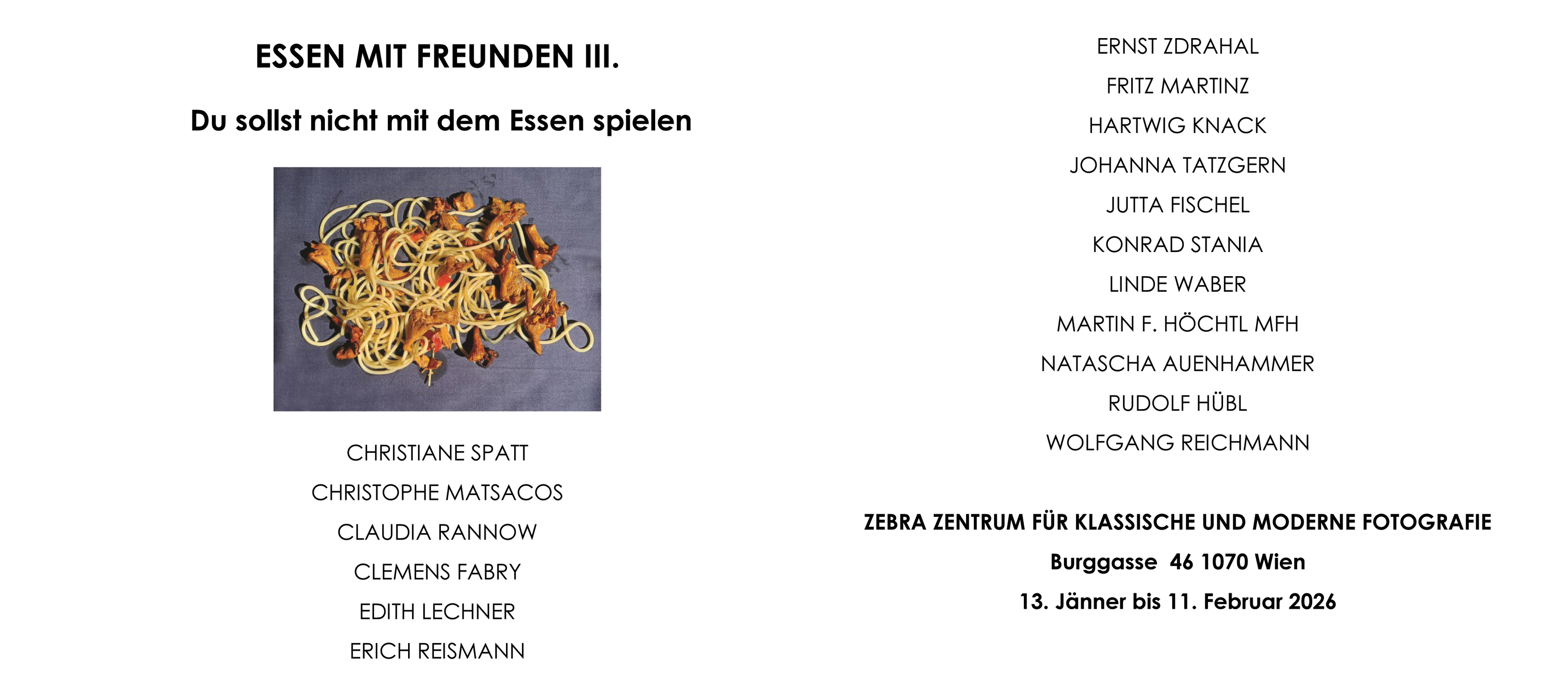 Herzliche Einladung zum "Essen mit Freunden III." am 13.1. 2026 um 19 Uhr Du sollst nicht mit dem Essen spielen