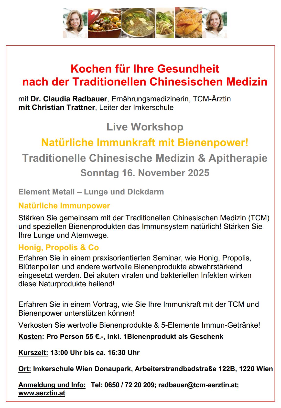 Anmeldung und Info: Tel: 0650 / 72 20 209; radbauer@tcm-aerztin.at; www.aerztin.at