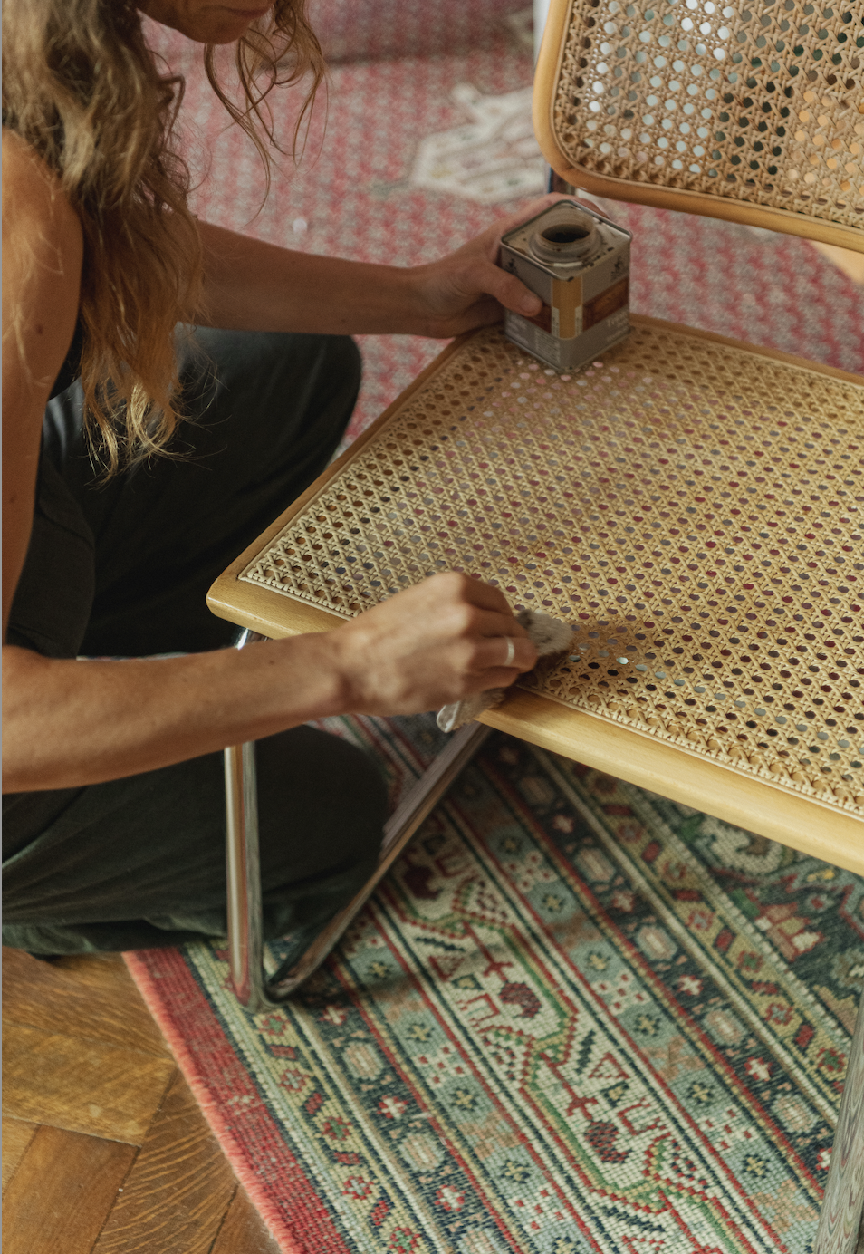 Neben der Kunstrestaurierung begann ich auch mit der Restaurierung von Möbeln – insbesondere von Stühlen. Ich erlernte das Handwerk in Zusammenarbeit mit einem erfahrenen Möbelrestaurator und entwickelte bald ein besonderes Interesse an Möbeln mit geflochtenen Sitzflächen. Dänisches Kordelflechten, Wiener Geflecht und auch Polsterarbeiten wurden allmählich zu einer zweiten Leidenschaft und sind heute ein fester Bestandteil meiner täglichen Arbeit im Atelier.