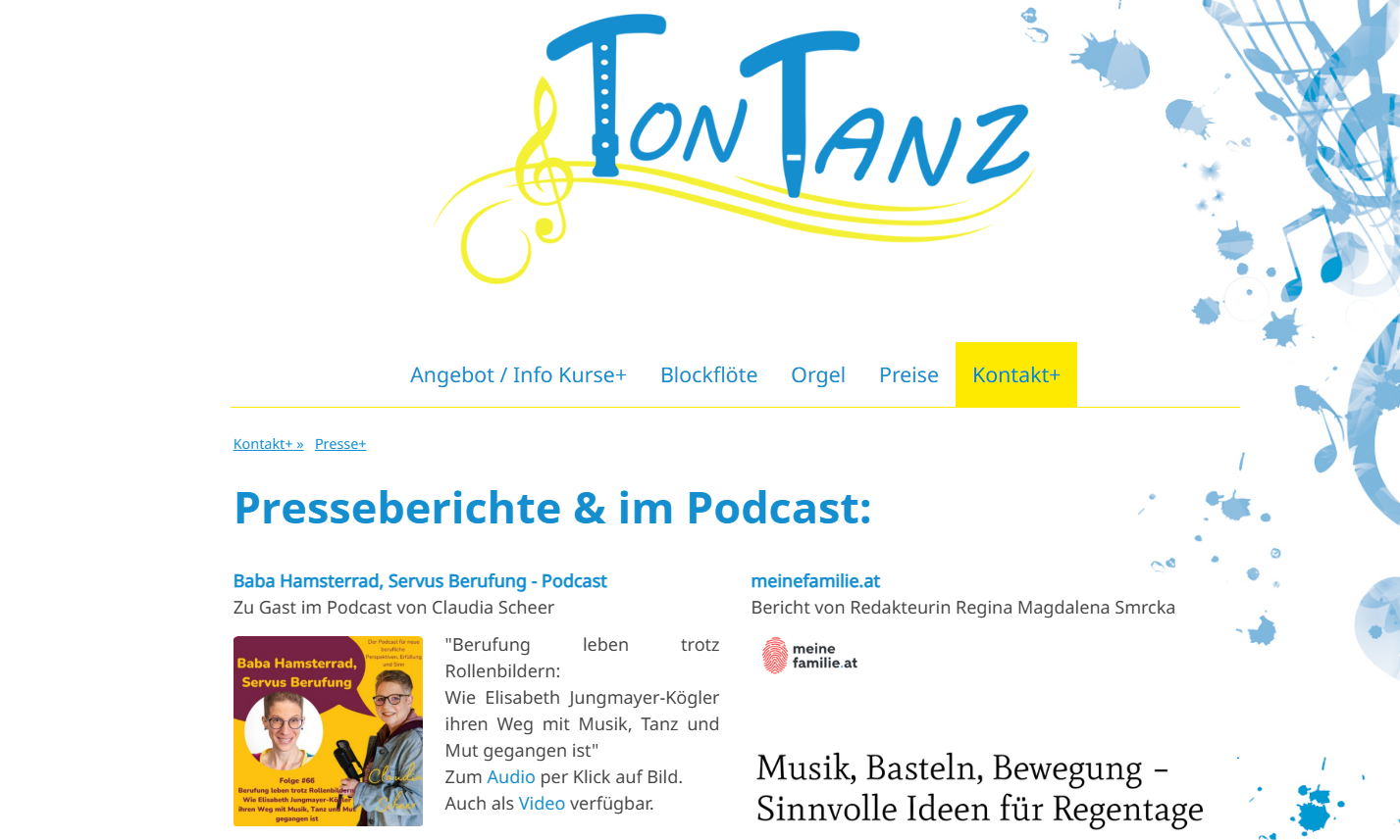 🔹Klavierunterricht, Musiktheorie, Vorbereitung auf Musik-Prüfungen, Tanz-/Musik-Angebote für Bildungseinrichtungen (zB Kindergarten): https://www.tontanz.at/kontakt/